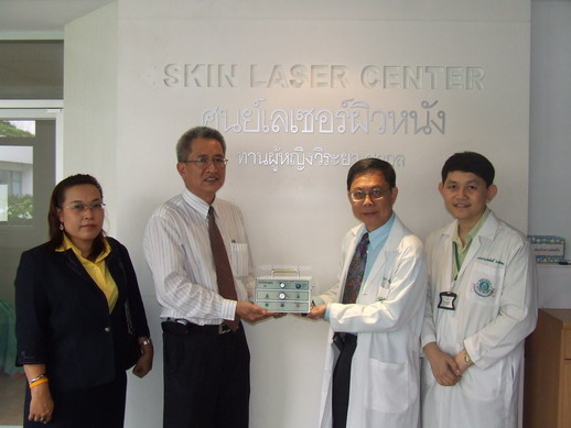 Donation August 18,2006 Mr. Surapong Kanoknark CEO Medicare (Thailand) donate High frequency electrosurgical units model Dentosurg FFP 90 W (Ellman, USA) to Ramathibodi skin laser center. Prof. Somyot Charuwichitratana received this unit.