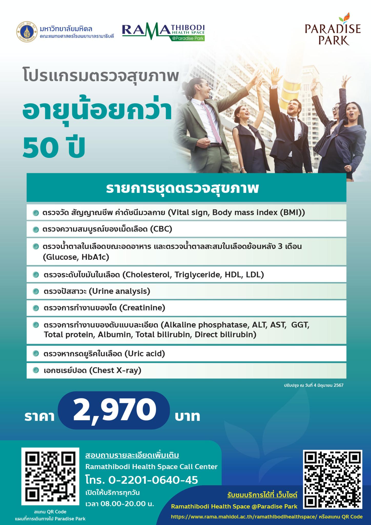 โปรแกรมตรวจสุขภาพ อายุน้อยกว่า 50 ปี Paradise Park