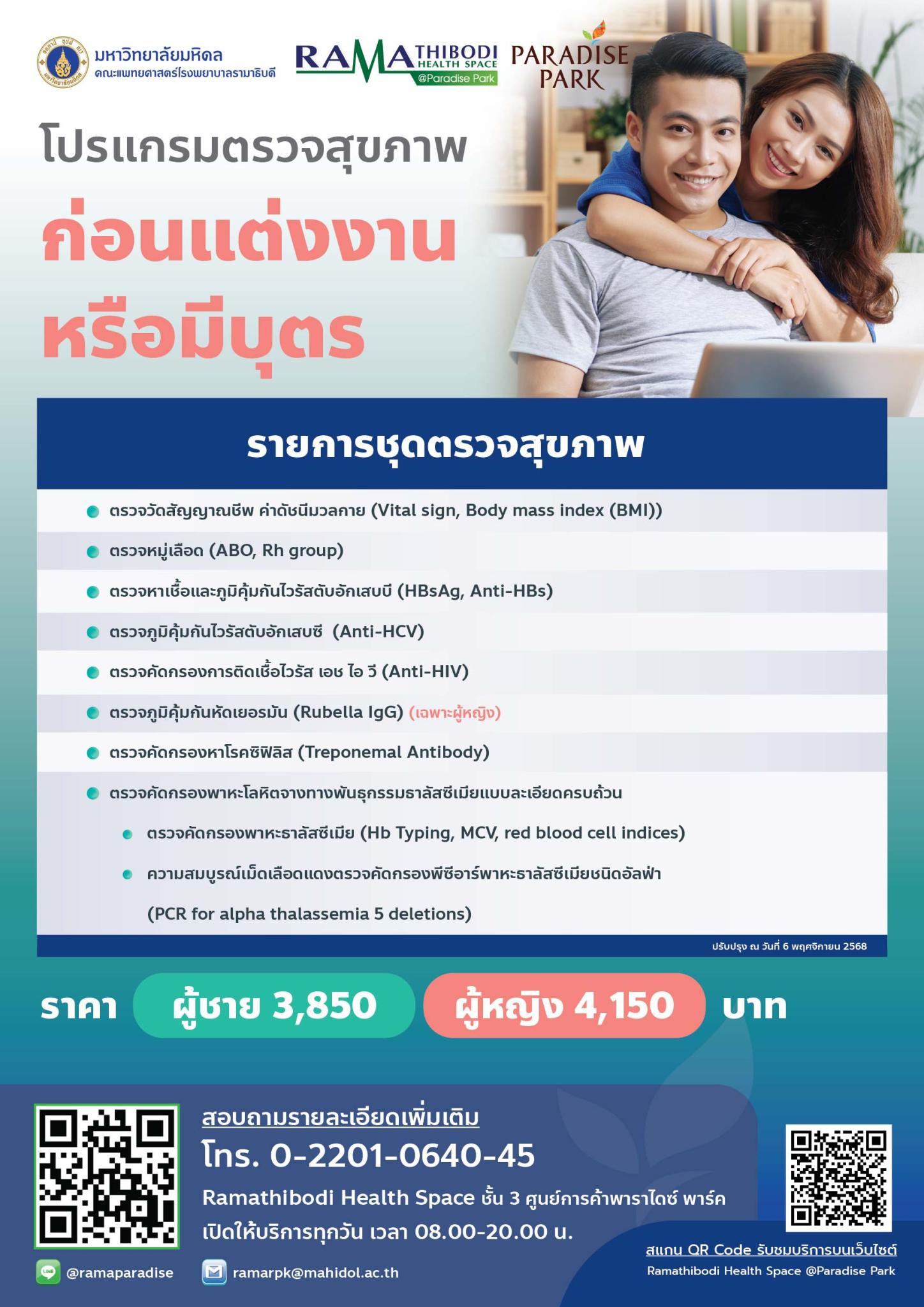 โปรแกรมตรวจสุขภาพก่อนแต่งงานหรือมีบุตร ParadisePark รวม