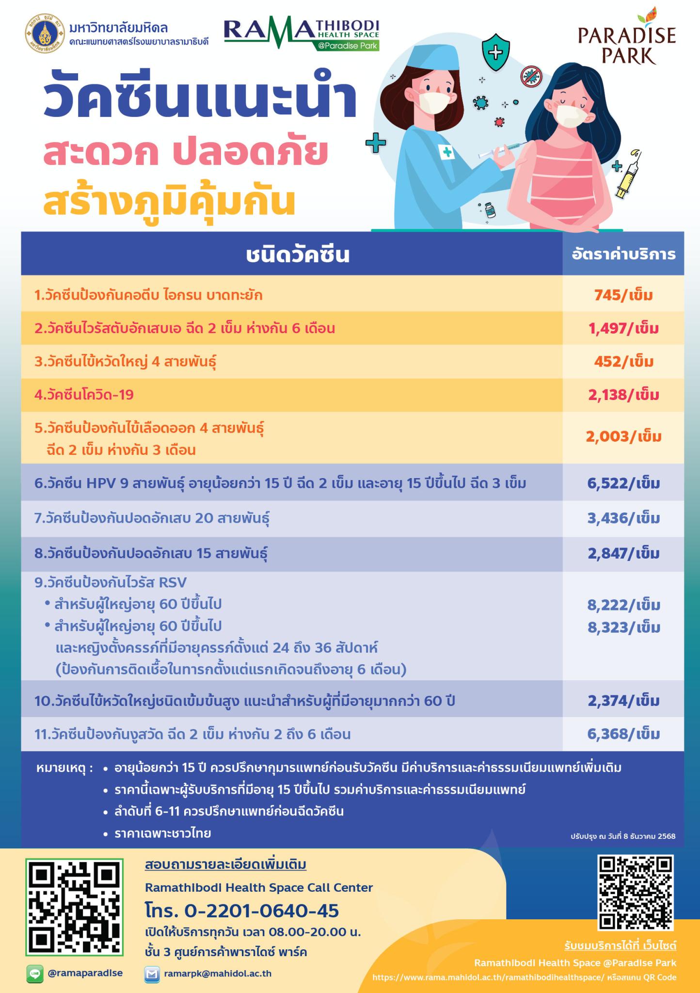 วัคซีนแนะนำ รามาธิบดี เฮลธ์ สเปซ คลินิกพรีเมียม @ พาราไดซ์ พาร์ค