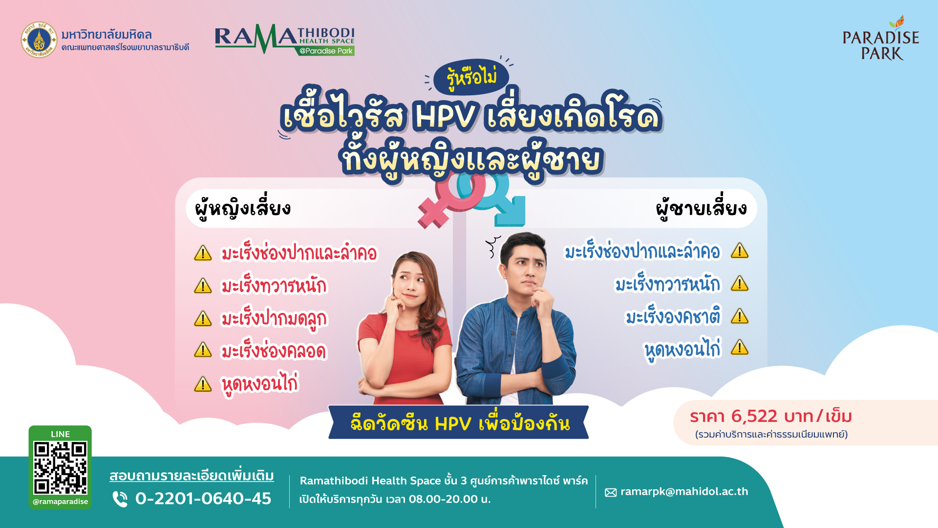 สอบถามข้อมูลบริการเพิ่มเติม หรือนัดหมายแพทย์ ได้ที่ คลินิกพรีเมียม รามาธิบดี เฮลธ์ สเปซ ศูนย์การค้าพาราไดซ์ พาร์ค ชั้น 3