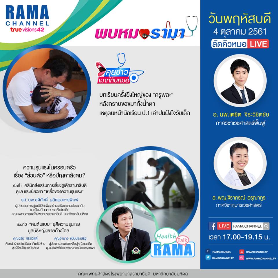 รายการ...พบหมอรามา (ลัดคิวหมอ) วันพฤหัสบดีที่ 4 ตุลาคม 2561 พบกับ อ.นพ.เตชิต จิระวิชิตชัย ภาควิชาเวชศาสตร์ฟื้นฟู ในช่วง "ลัดคิวหมอ" ทางช่อง RAMA CHANNEL true visions 42