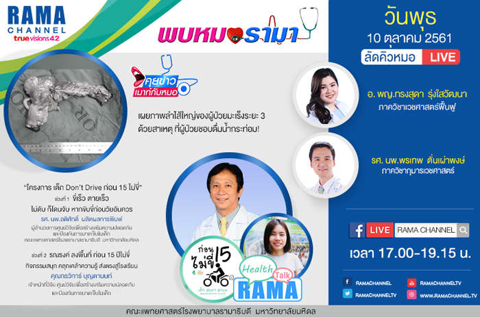 รายการ...พบหมอรามา (ลัดคิวหมอ) วันพุธที่ 10 ตุลาคม 2561 พบกับ อ.พญ.ทรงสุดา รุ่งใสวัฒนา ภาควิชาเวชศาสตร์ฟื้นฟู ในช่วง "ลัดคิวหมอ" ทางช่อง RAMA CHANNEL true visions 42