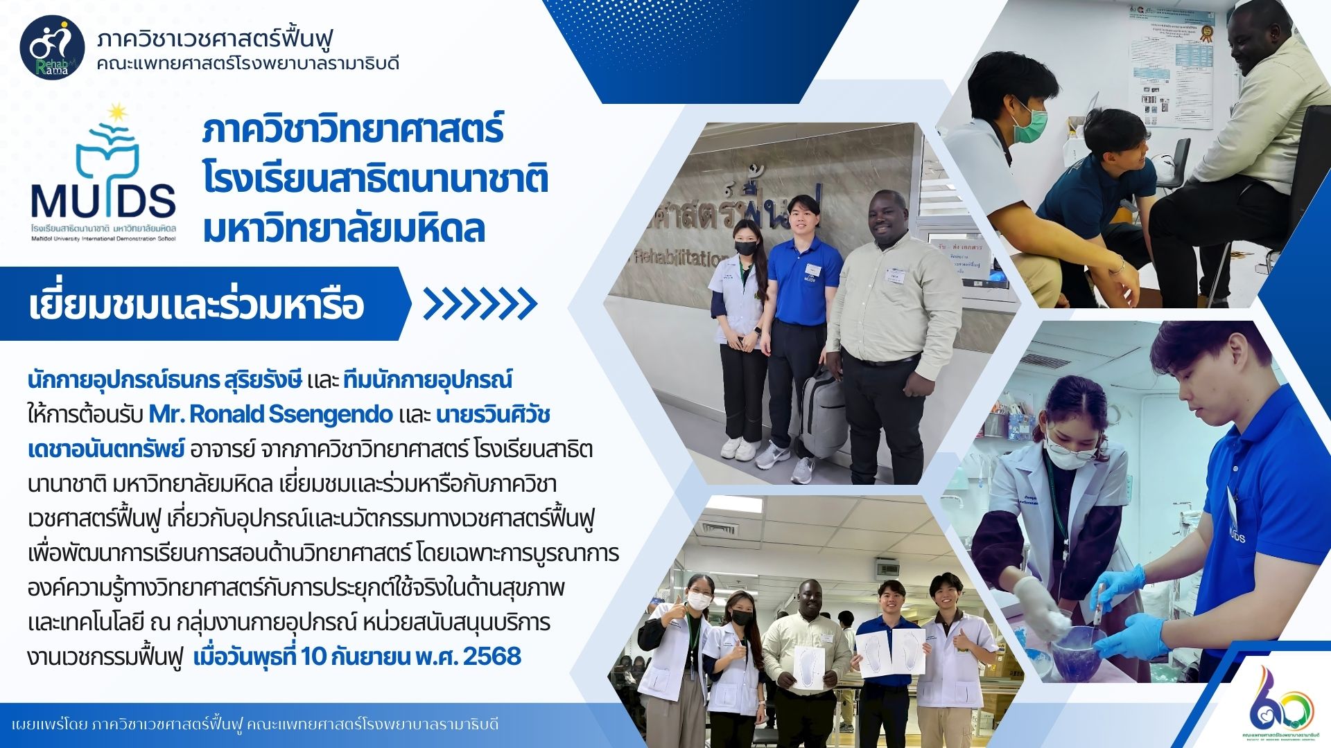 ภาควิชาวิทยาศาสตร์ โรงเรียนสาธิตนานาชาติ มหาวิทยาลัยมหิดล เยี่ยมชมและร่วมหารือกับ ภาควิชาเวชศาสตร์ฟื้นฟู