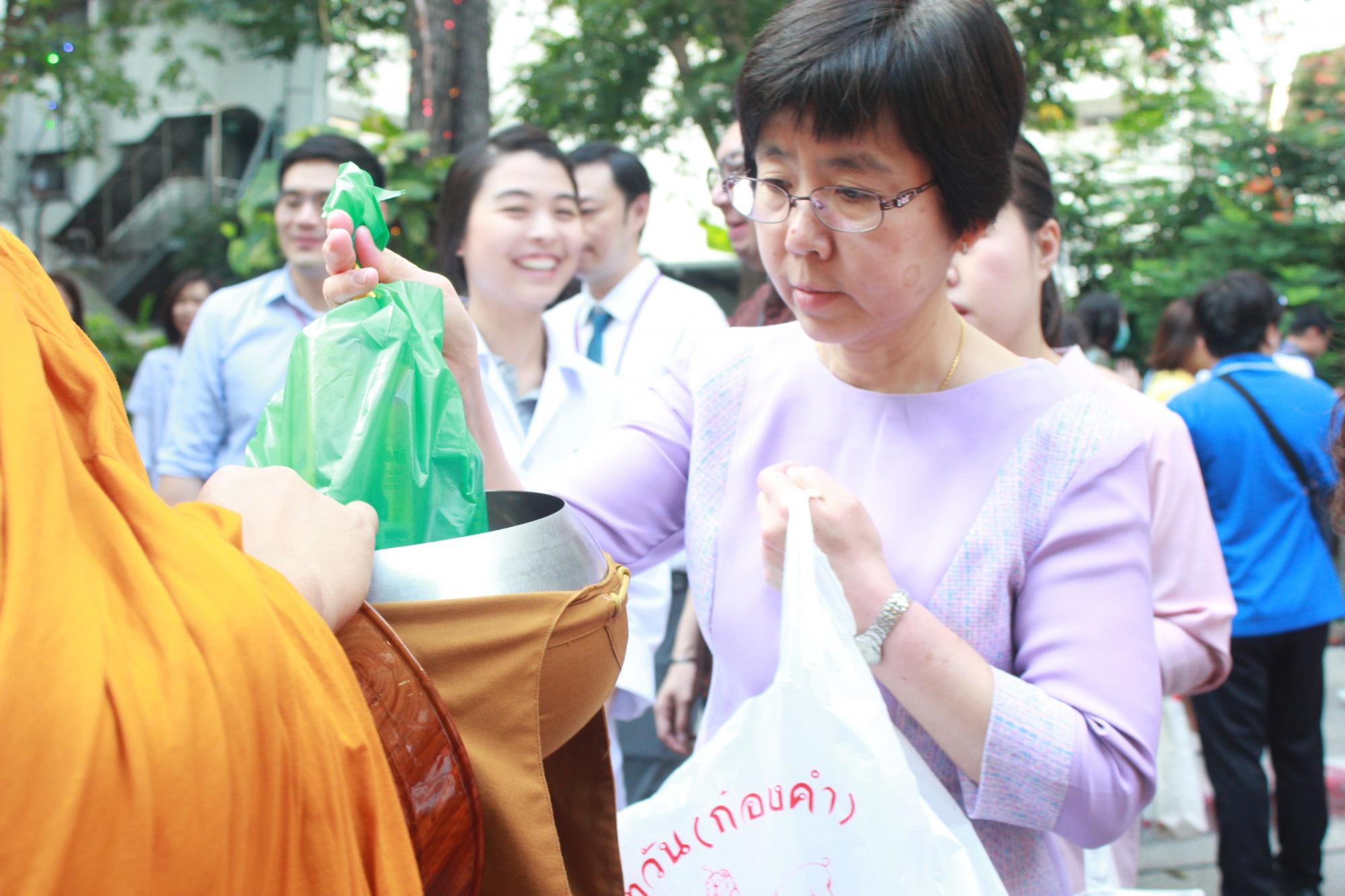อ.ดร.นพ.ปรเมษฐ์ ฉายารัตนศิลป์ หัวหน้าภาควิชาเวชศาสตร์ฟื้นฟู พร้อมด้วยคณาจารย์ หัวหน้างาน หัวหน้าหน่วย แพทย์ประจำบ้าน และบุคลากรภาควิชาเวชศาสตร์ฟื้นฟู ร่วมพิธีทำบุญตักบาตรเนื่องในโอกาส "ส่งท้ายปีเก่า ต้อนรับปีใหม่ 2563" พระสงฆ์จำนวน 52 รูป เมื่อวันที่ 26 ธันวาคม 2562 ณ บริเวณหน้าหอพักนักศึกษาแพทย์ คณะแพทยศาสตร์โรงพยาบาลรามาธิบดี มหาวิทยาลัยมหิดล