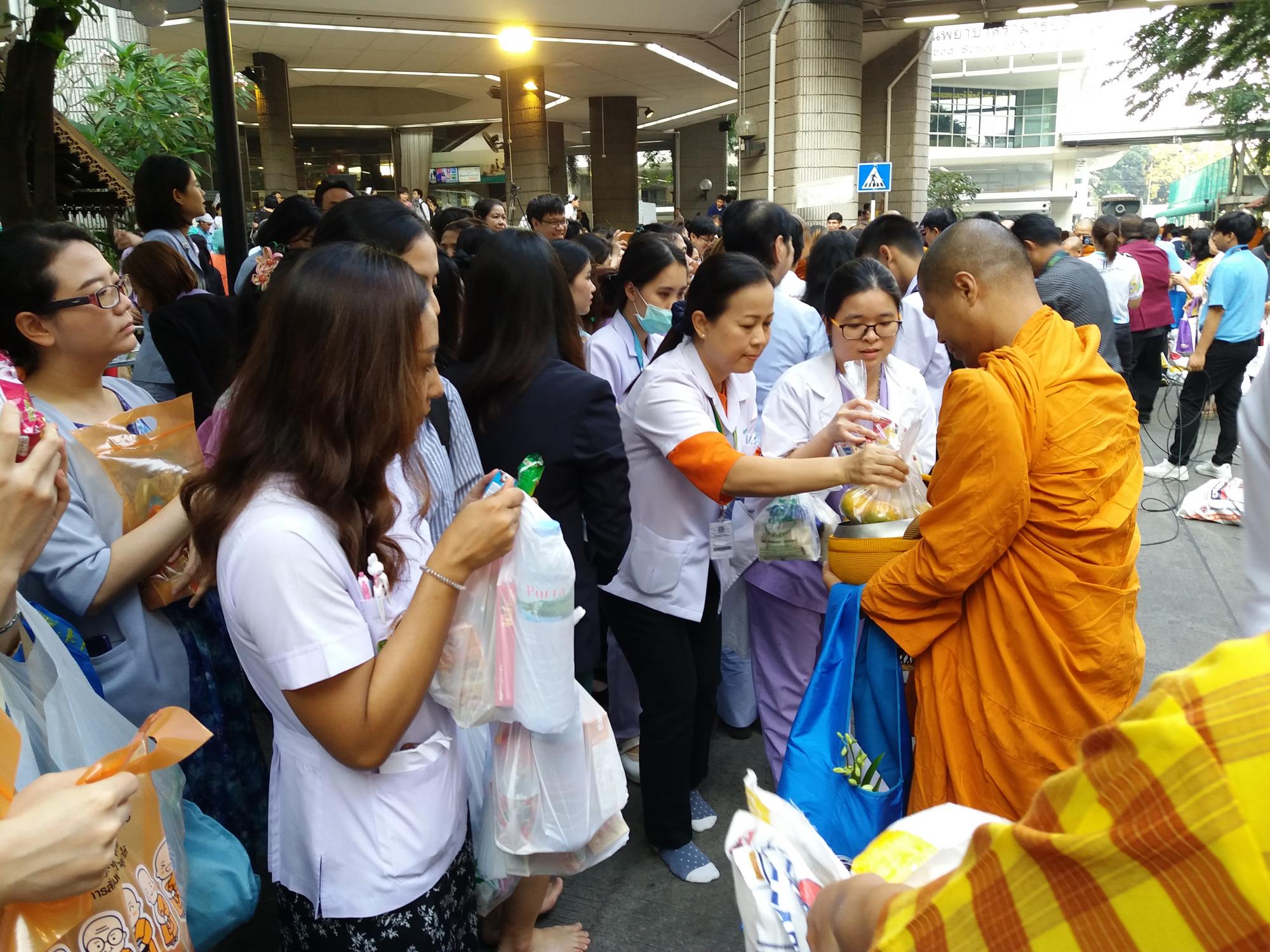 อ.ดร.นพ.ปรเมษฐ์ ฉายารัตนศิลป์ หัวหน้าภาควิชาเวชศาสตร์ฟื้นฟู พร้อมด้วยคณาจารย์ หัวหน้างาน หัวหน้าหน่วย แพทย์ประจำบ้าน และบุคลากรภาควิชาเวชศาสตร์ฟื้นฟู ร่วมพิธีทำบุญตักบาตรเนื่องในโอกาส "ส่งท้ายปีเก่า ต้อนรับปีใหม่ 2562" พระสงฆ์จำนวน 51 รูป เมื่อวันที่ 27 ธันวาคม 2561 ณ บริเวณหน้าหอพักนักศึกษาแพทย์ คณะแพทยศาสตร์โรงพยาบาลรามาธิบดี มหาวิทยาลัยมหิดล