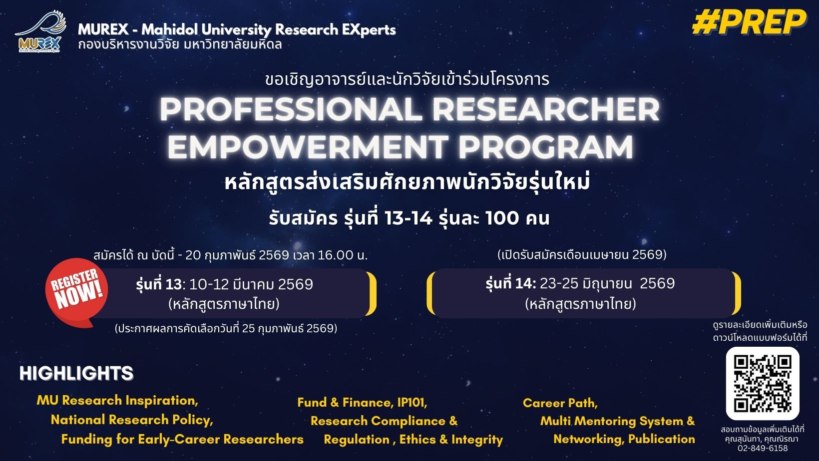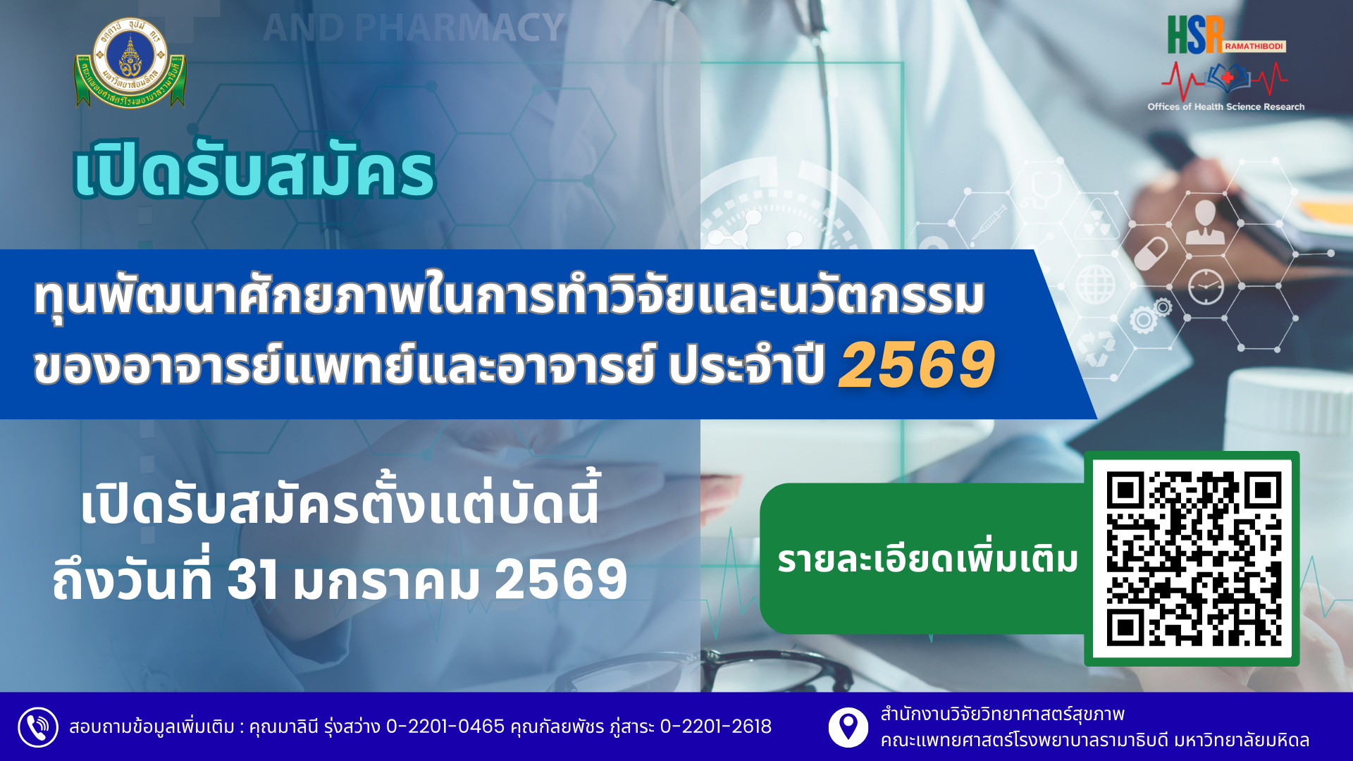กองบริหารงานวิจัย ม.มหิดล ขอเชิญชวน อาจารย์ นักวิจัยและผู้สนใจทุกท่าน ยื…