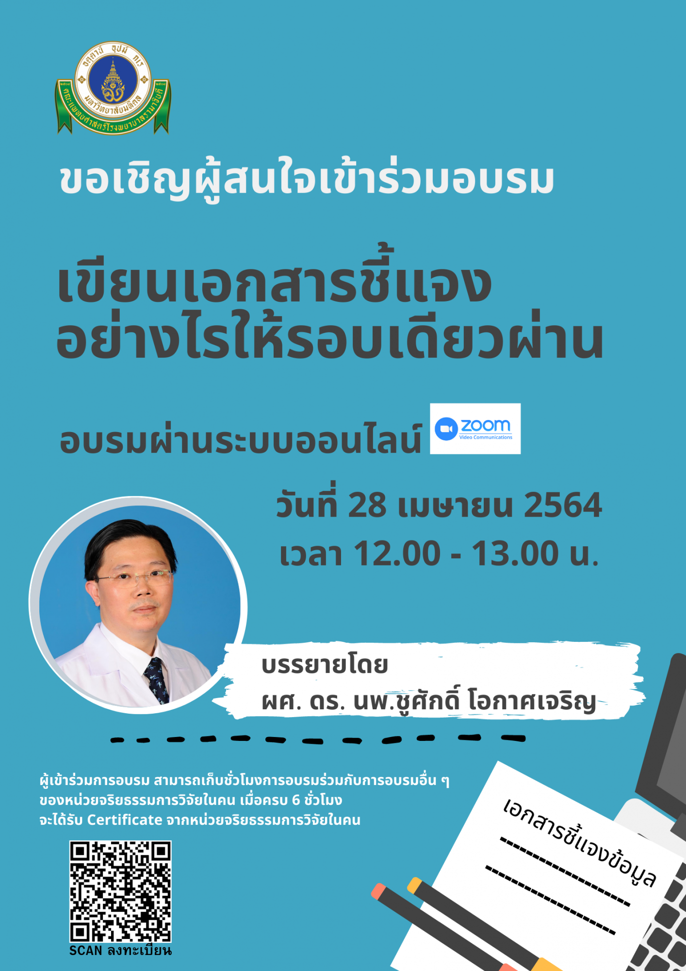 สามารถลงทะเบียนเข้าร่วมอบรมโดยการScan QR Code ในโปสเตอร์ประชาสัมพันธ์