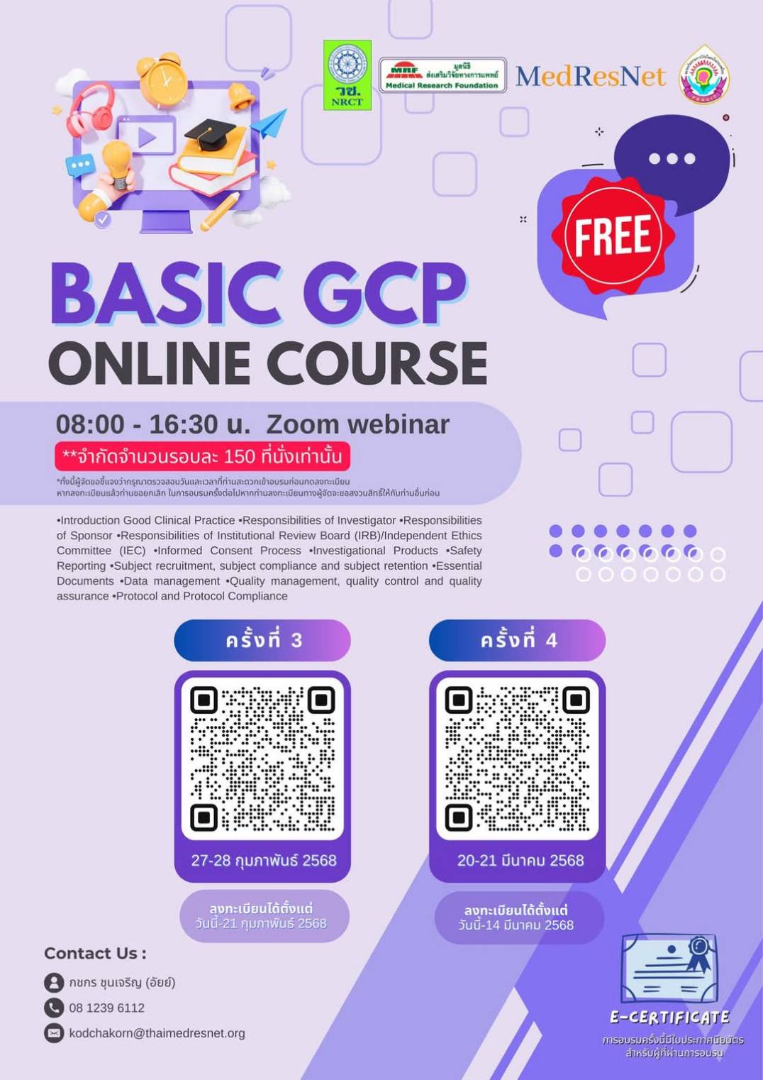 การอบรมหลักสูตรแนวทางการปฎิบัติการวิจัยทางคลินิกที่ดี (Good Clinical Practice: GCP)