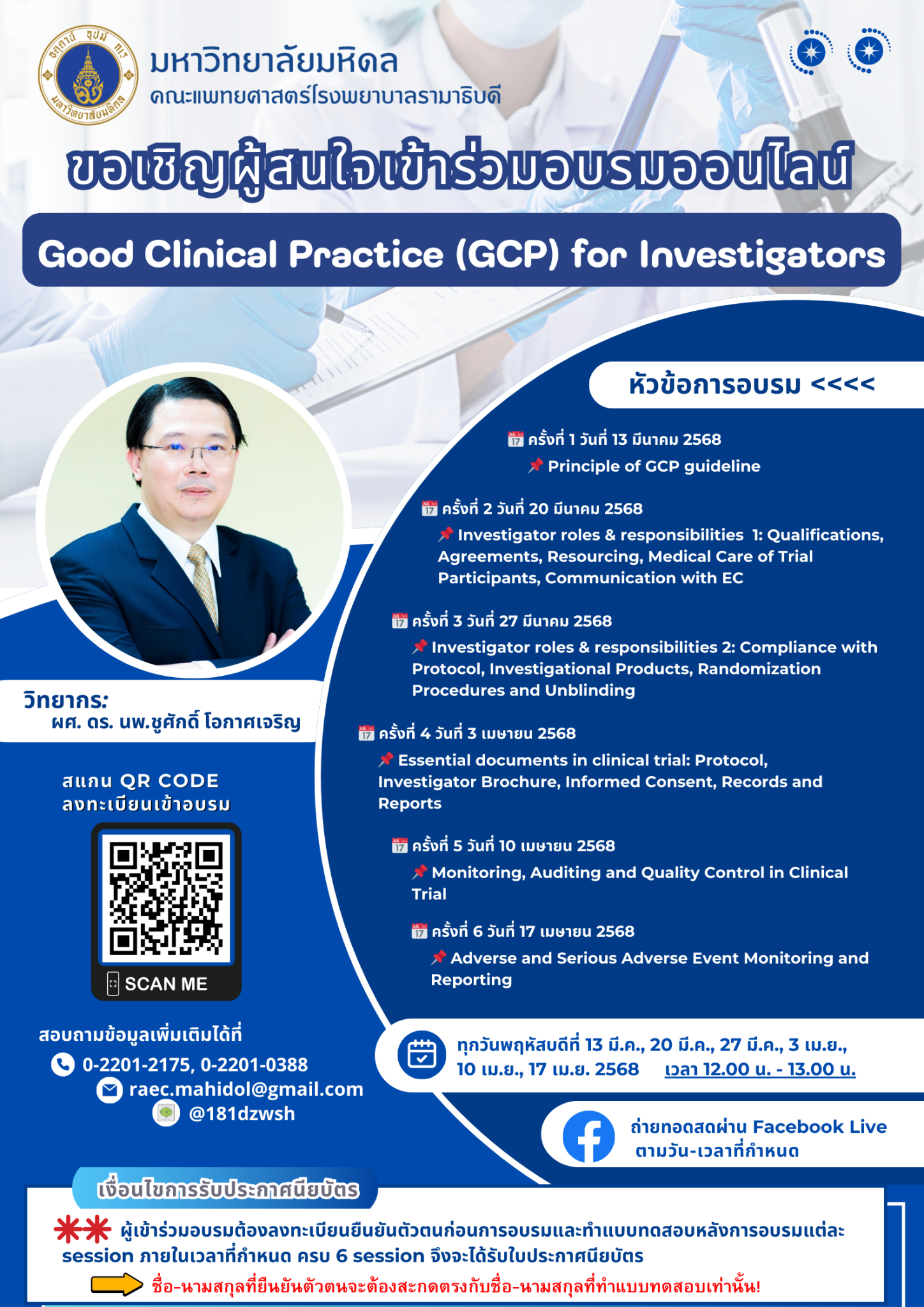 ขอเชิญผู้สนใจเข้าร่วมอบรมออนไลน์ Good Clinical Practice (GCP) for Investigators