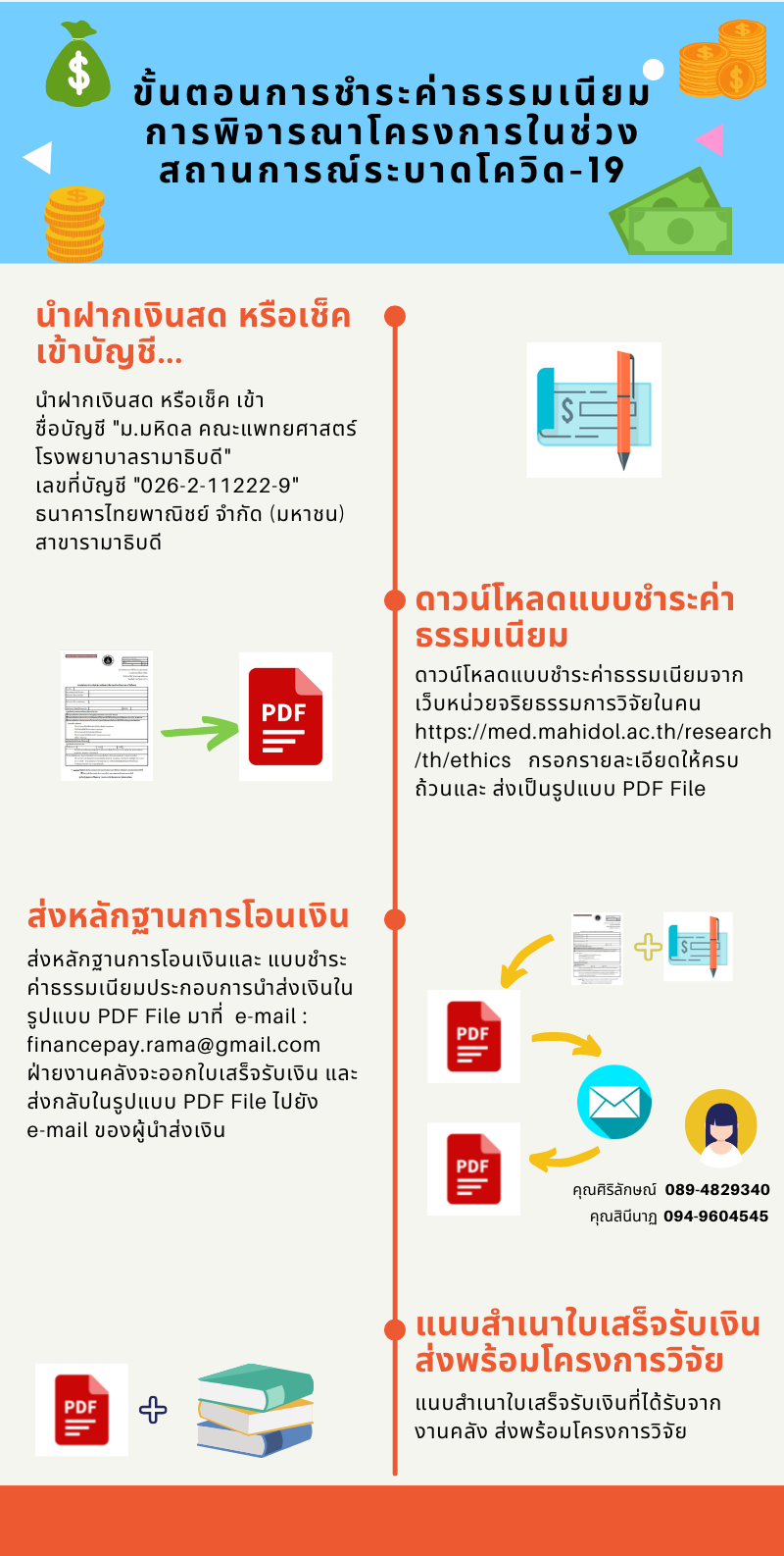 ขั้นตอนการชำระค่าธรรมเนียมการพิจารณาโครงการวิจัยในช่วงสถานการณ์ระบาดโควิด-19