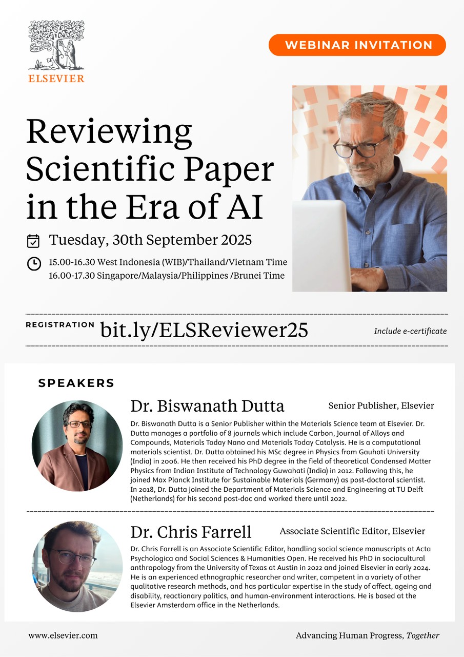 ลงทะเบียนได้ที่: https://elsevier.zoom.us/webinar/register/WN_8P9ygHzCRv2L1iXNNdQCCg#/registration