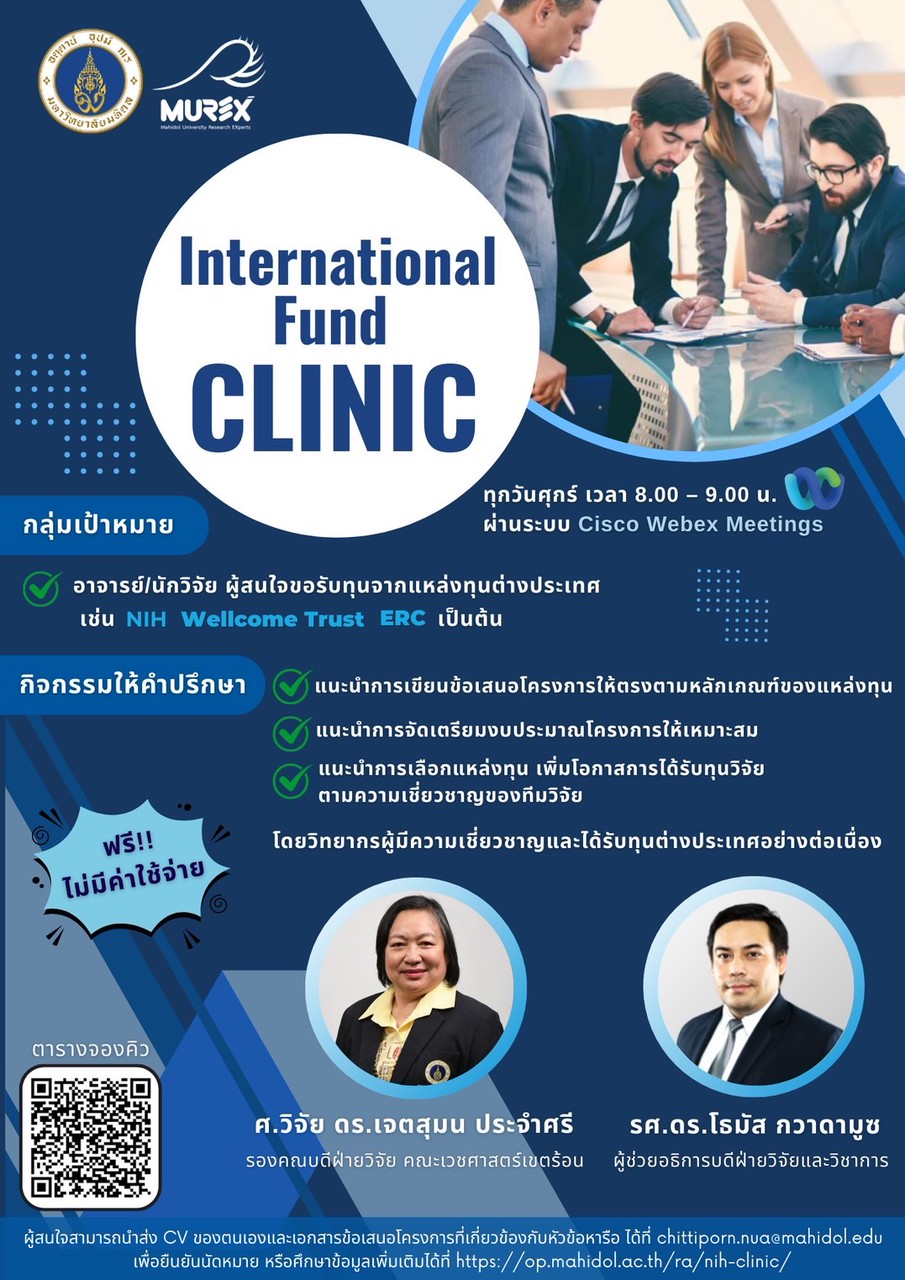️ขอเรียนเชิญอาจารย์/นักวิจัยทุกท่าน ลงนัดหมาย International Fund Clinic