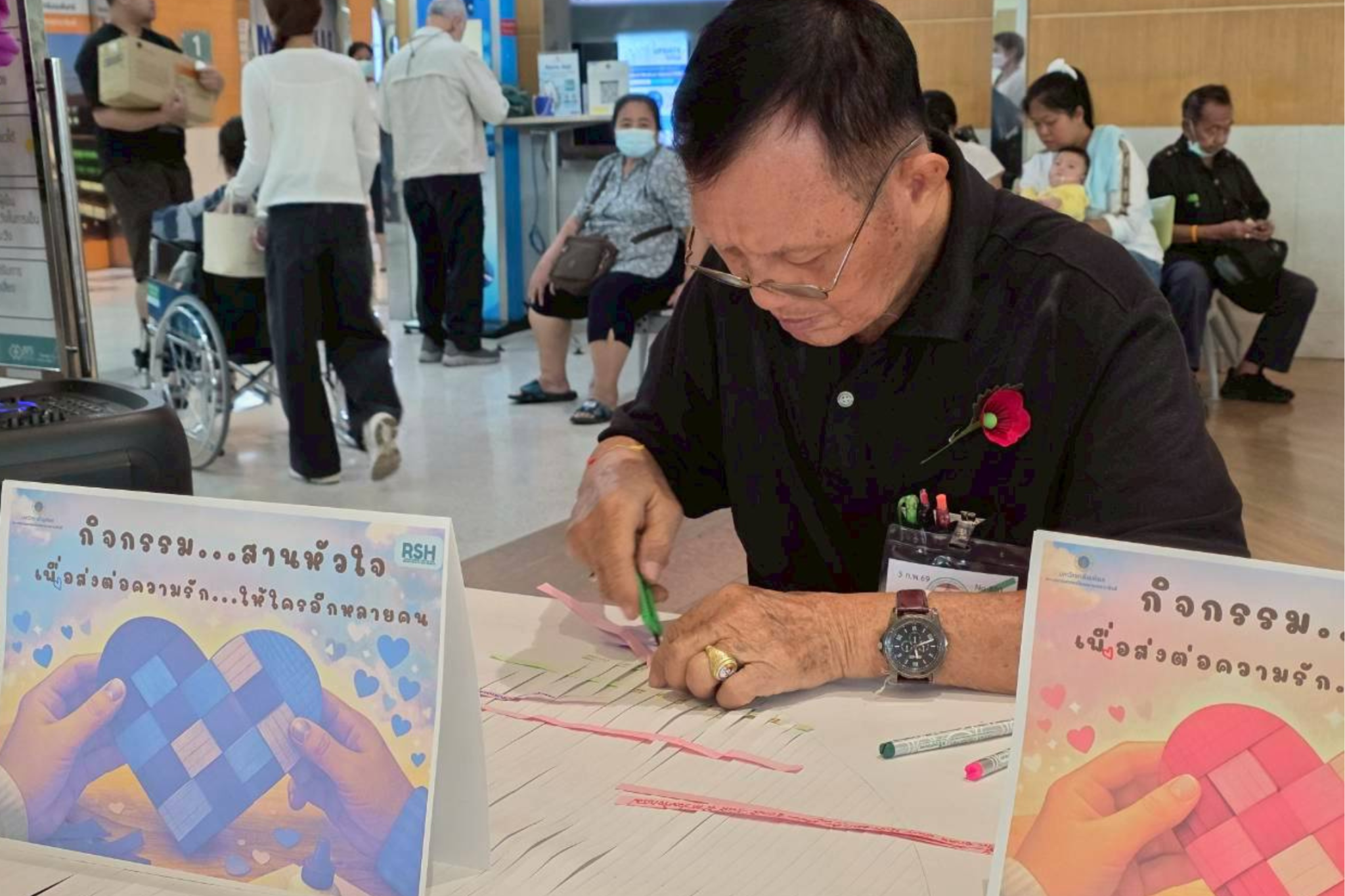ผู้สูงอายุได้ร่วมกันทำ “หัวใจสาน” อย่างตั้งใจ