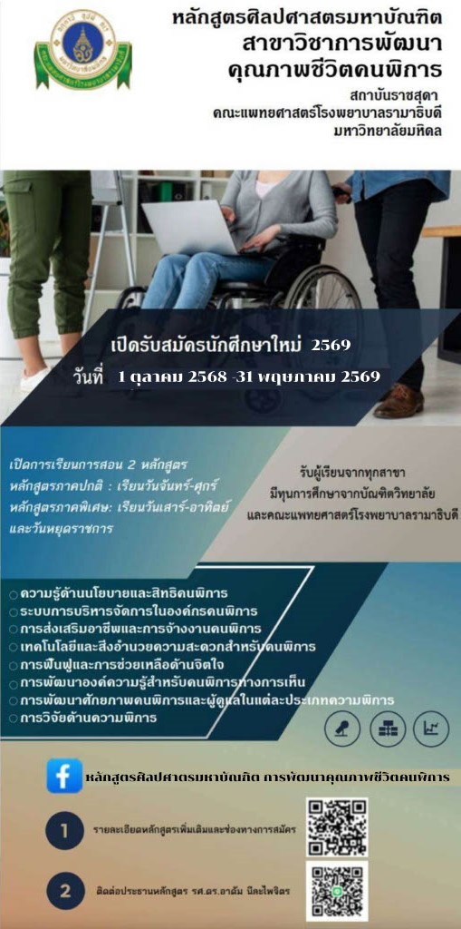 หลักสูตรศิลปศาสตรมหาบัณฑิต สาขาวิชาการพัฒนาคุณภาพชีวิตคนพิการ (ภาคปกติและภาคพิเศษ)