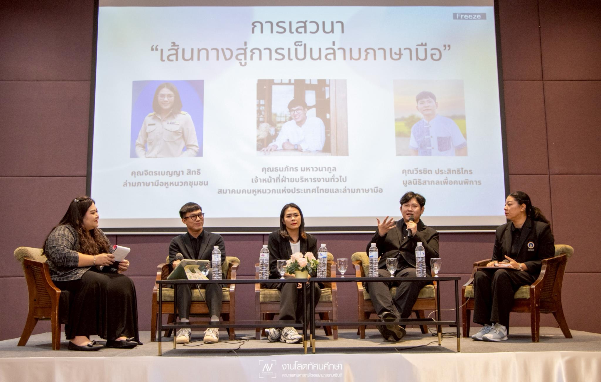 การดำเนินโครงการประกอบด้วย เวทีเสวนาหัวข้อ “เส้นทางสู่การเป็นล่ามภาษามือ”“แนวทางการผลิตและพัฒนาล่ามภาษามือไทยในยุคปัจจุบัน : มุมมองเชิงระบบสู่การปฏิบัติ” “เสียงสะท้อนจากคนหูหนวก” รวมถึงกิจกรรมสนทนากลุ่ม “เรื่องเล่าจากสนามจริง” “ร่วมคิดร่วมสร้างล่ามภาษามือ Gen ใหม่” ในกิจกรรมครั้งนี้ ได้แลกเปลี่ยนความรู้ ประสบการณ์ ปัญหา/อุปสรรค เทคนิคการแปล แนวทางในการพัฒนาตนเอง และสร้างแรงบันดาลใจในการเป็นล่ามภาษามือ ซึ่งได้รับเกียรติจากวิทยากรผู้เชี่ยวชาญ ในหน่วยงานภาครัฐ เอกชน และองค์กรเครือข่ายทุกภาคส่วนที่เกี่ยวข้องในการขับเคลื่อนวิชาชีพล่ามภาษามือและงานด้านคนพิการทางการได้ยิน