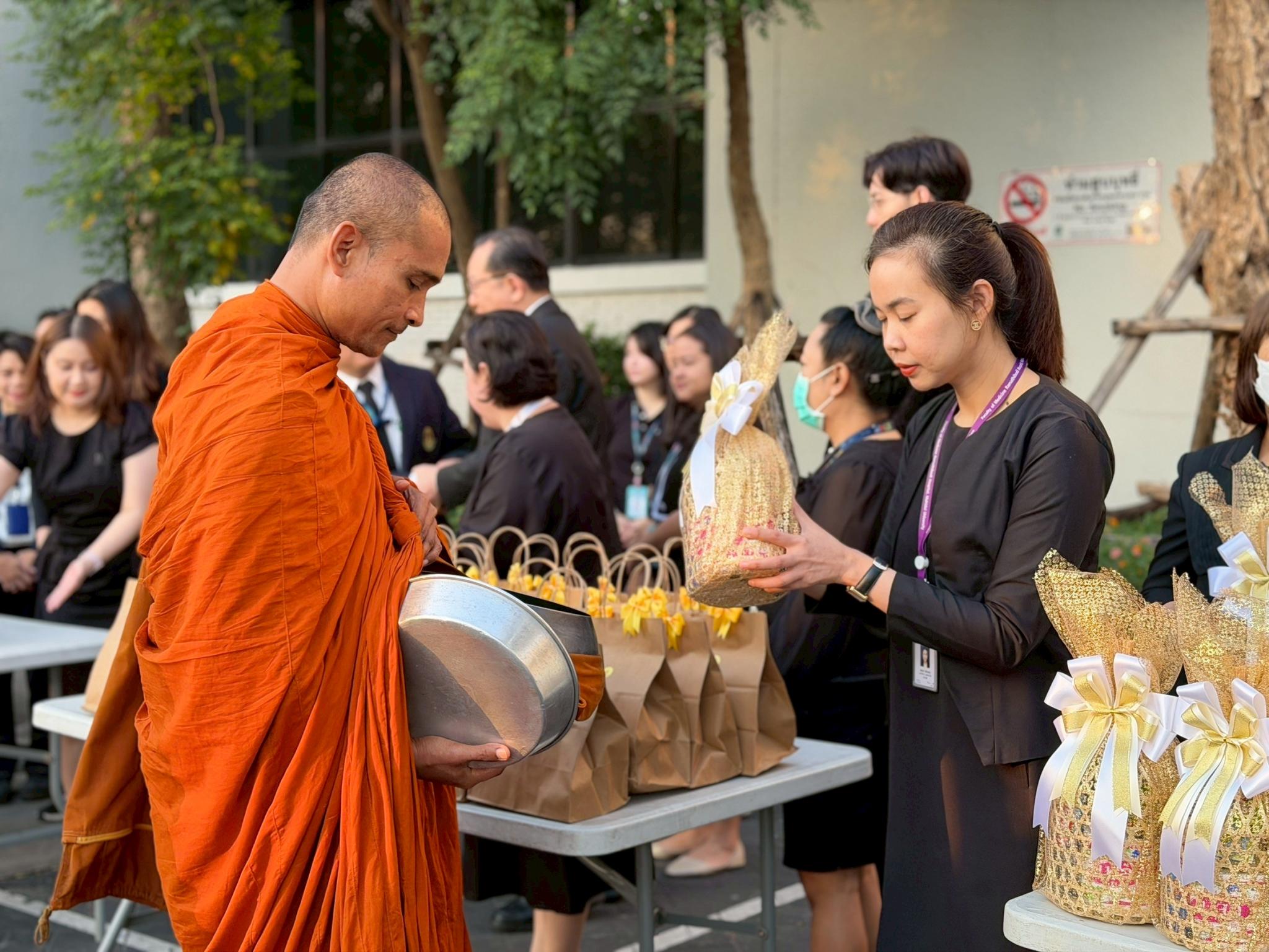 อาจารย์ ดร.สุนันทา ขลิบทอง ผู้ช่วยผู้อำนวยการด้านวิชาการและวิเทศสัมพันธ์ พร้อมด้วยบุคลากร สถาบันราชสุดา คณะแพทยศาสตร์โรงพยาบาลรามาธิบดี มหาวิทยาลัยมหิดล เข้าร่วมพิธีทำบุญตักบาตร เพื่อน้อมรำลึกในพระมหากรุณาธิคุณ พระบาทสมเด็จพระบรมชนกาธิเบศร มหาภูมิพลอดุลยเดชมหาราชบรมราถบพิตร เนื่องในโอกาสวันคล้ายวันพระบรมราชสมภพ วันชาติ และวันพ่อแห่งชาติ วันจันทร์ที่ 1 ธันวาคม 2568 ณ สำนักงานอธิการบดี มหาวิทยาลัยมหิดล ศาลายา
