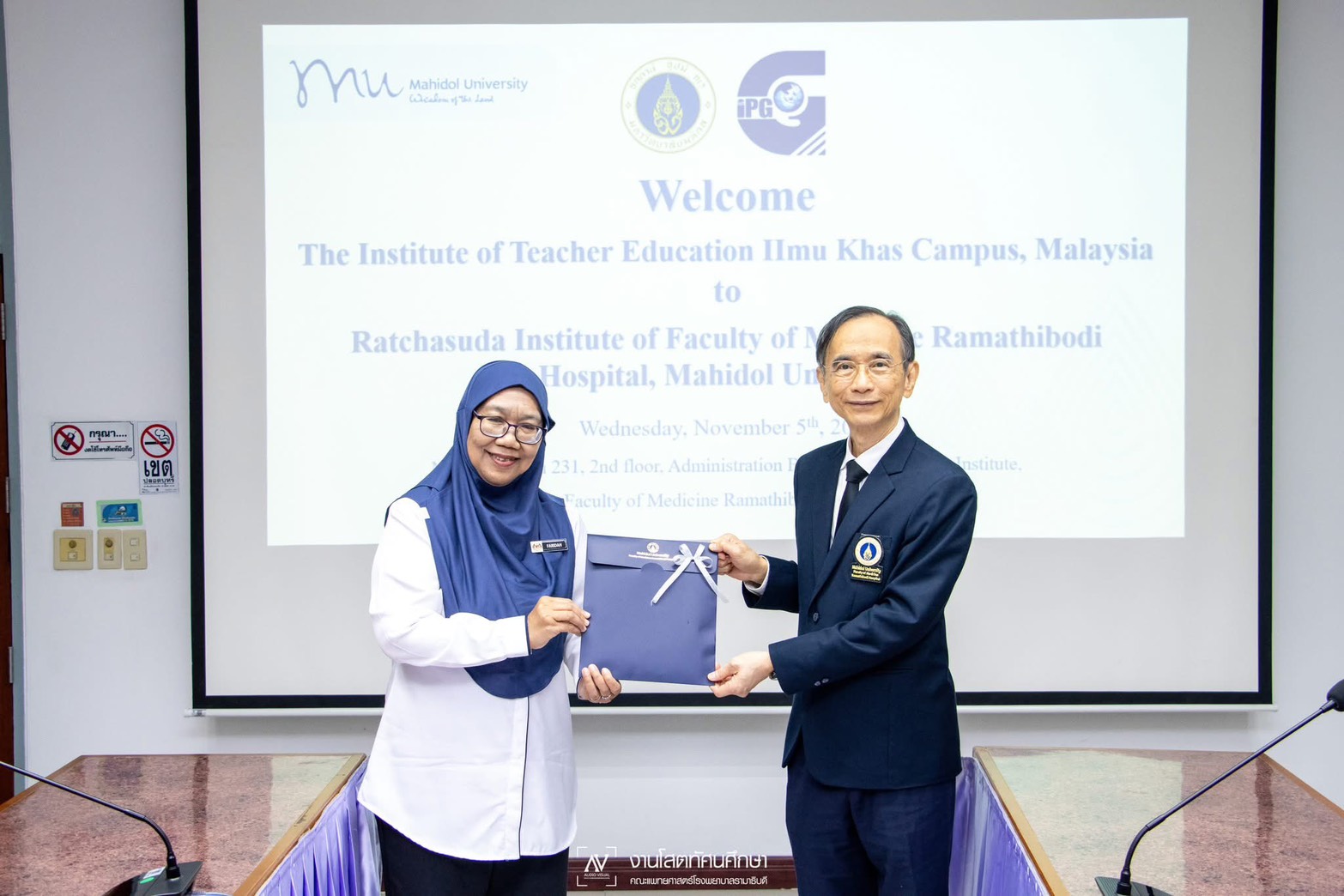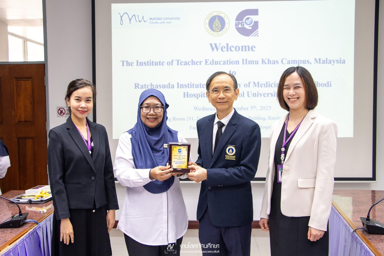 เมื่อวันที่ 5 พฤศจิกายน พ.ศ. 2568 ณ ห้องประชุม 231 ชั้น 2 อาคารอำนวยการ สถาบันราชสุดา คณะแพทยศาสตร์โรงพยาบาลรามาธิบดี มหาวิทยาลัยมหิดล อาจารย์ นพ.สมเกียรติ ลีละศิธร ผู้อำนวยการสถาบันราชสุดา พร้อมด้วย อาจารย์ ดร.สุนันทา ขลิบทอง ผู้ช่วยผู้อำนวยการ ด้านวิชาการและวิเทศสัมพันธ์ และ อาจารย์ ดร.อิศวรา ศิริรุ่งเรือง อาจารย์ประจำสถาบัน ได้ให้การต้อนรับอย่างอบอุ่นแก่ Dr. Faridah Yakob ผู้อำนวยการสถาบันฝึกหัดครูอิลมูคัส (Institute of Teacher Education Ilmu Khas Campus: IPGKIK) และคณะจากประเทศมาเลเซีย