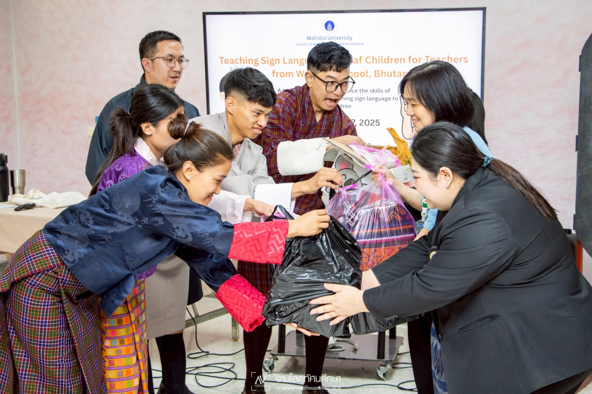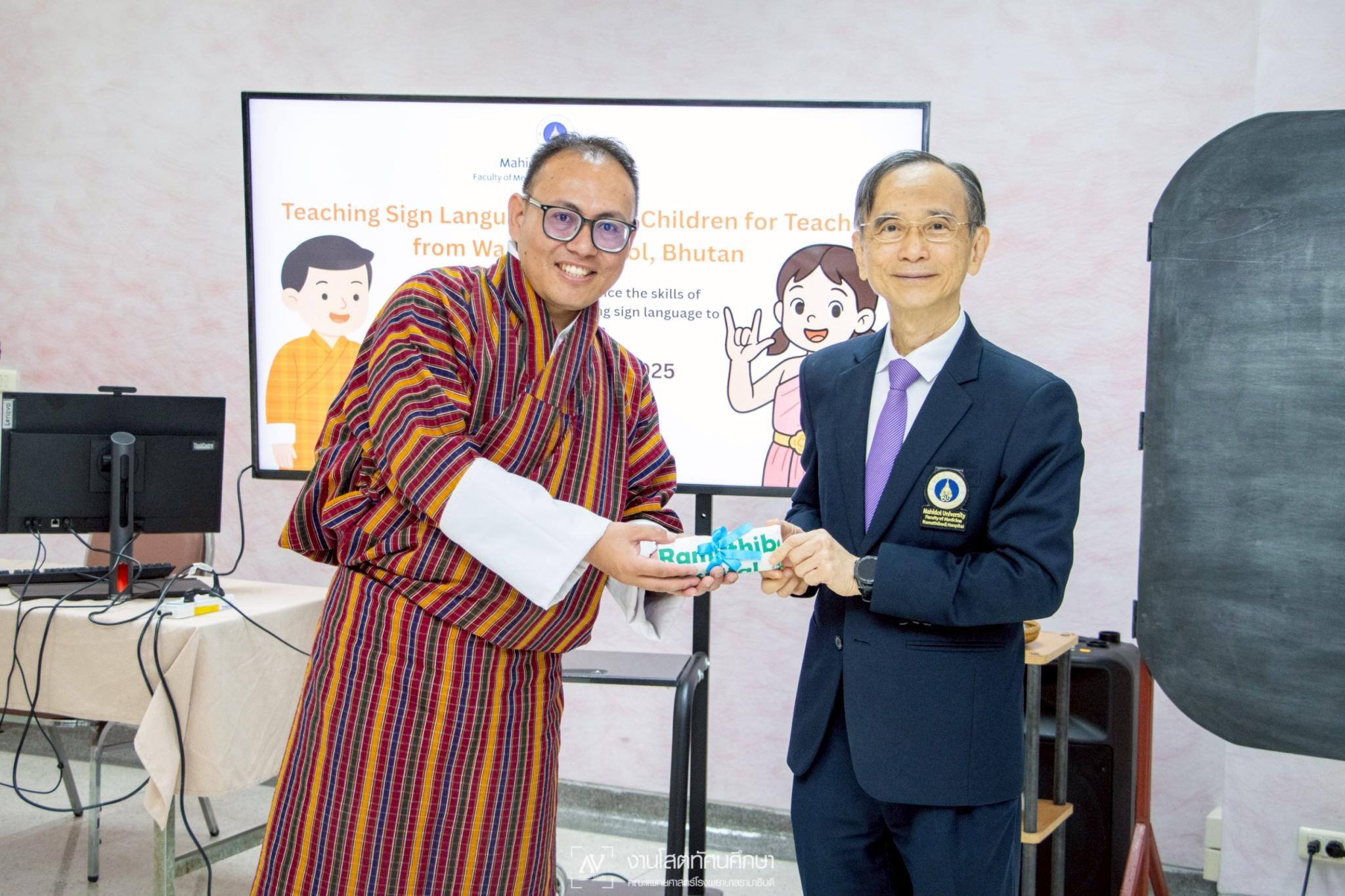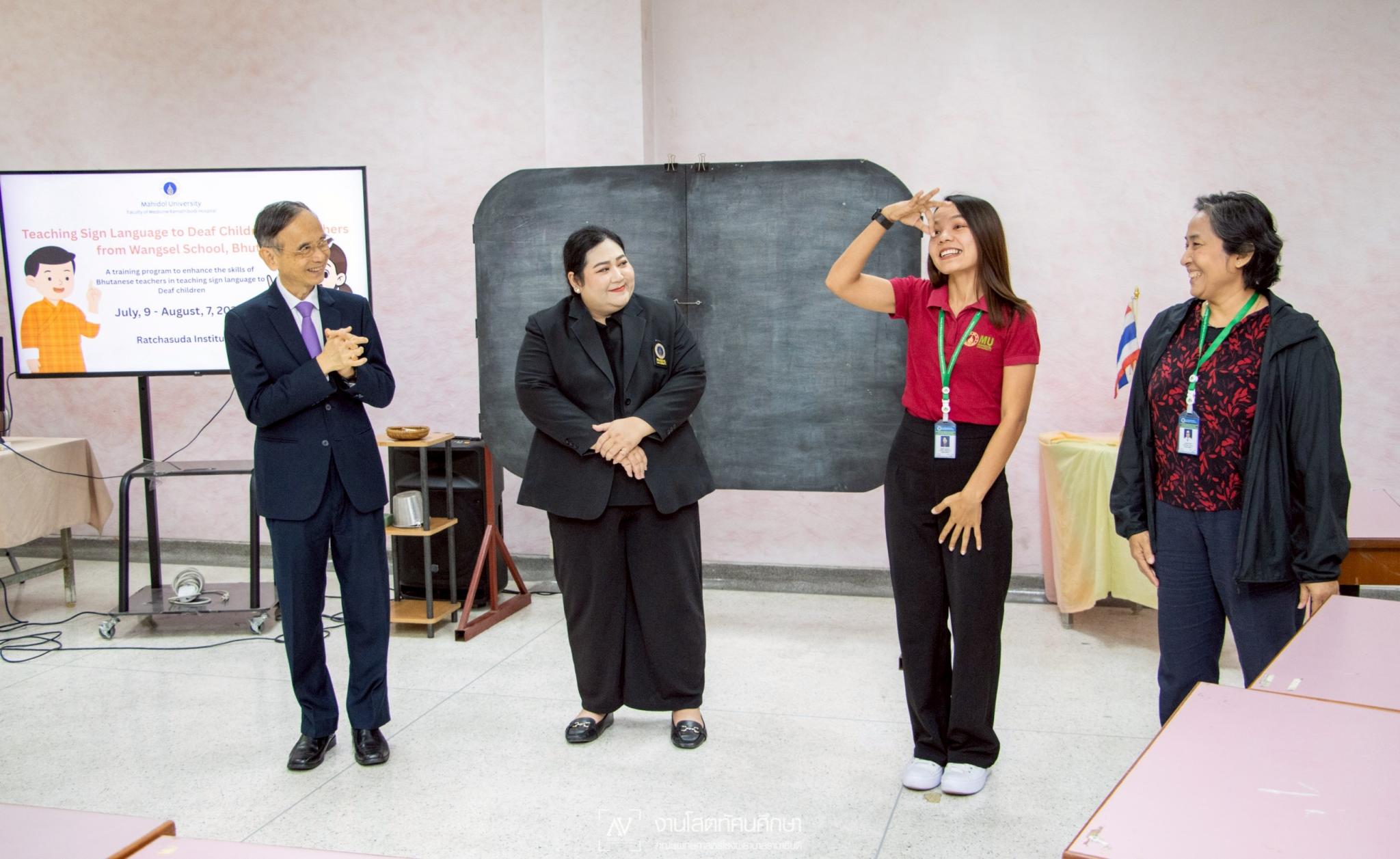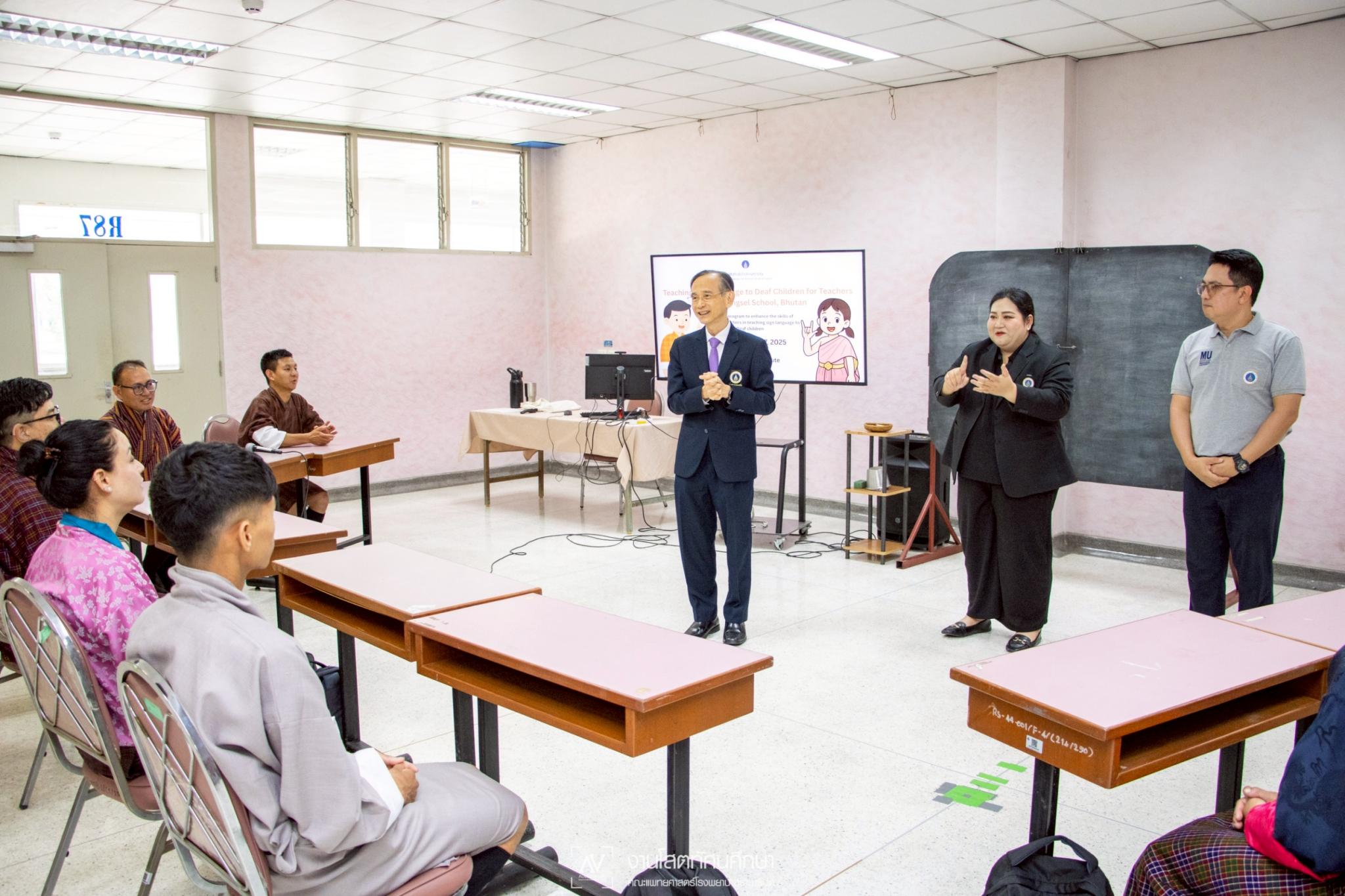 อาจารย์นายแพทย์สมเกียรติ ลีละศิธร ผู้อำนวยการสถาบันราชสุดา ให้เกียรติเป็นประธานในพิธีเปิดโครงการฝึกอบรม “Training Program: Teaching Sign Language to Deaf Children for the Deaf Instructors from Wangsel Institute for the Deaf, Kingdom of Bhutan” ซึ่งเป็นการฝึกอบรบที่จัดขึ้นเพื่อเสริมสร้างองค์ความรู้และทักษะในการสอนภาษามือแก่คณาจารย์ชาวภูฏานจาก Wangsel Institute for the Deaf จำนวน 8 ท่าน นำโดย Ms. Sushila Gurung โดยมุ่งหวังให้ผู้เข้ารับการอบรมมีความสามารถในการออกแบบหลักสูตรการเรียนการสอนภาษามือที่เหมาะสมกับนักเรียนที่มีความบกพร่องทางการได้ยินในแต่ละช่วงวัย ได้แก่ ระดับอนุบาล ประถมศึกษา และมัธยมศึกษา