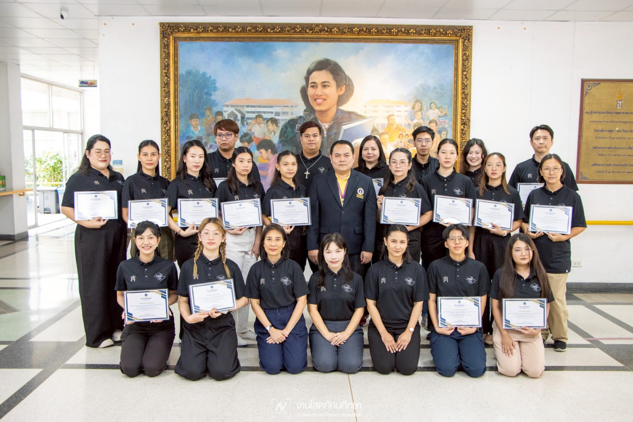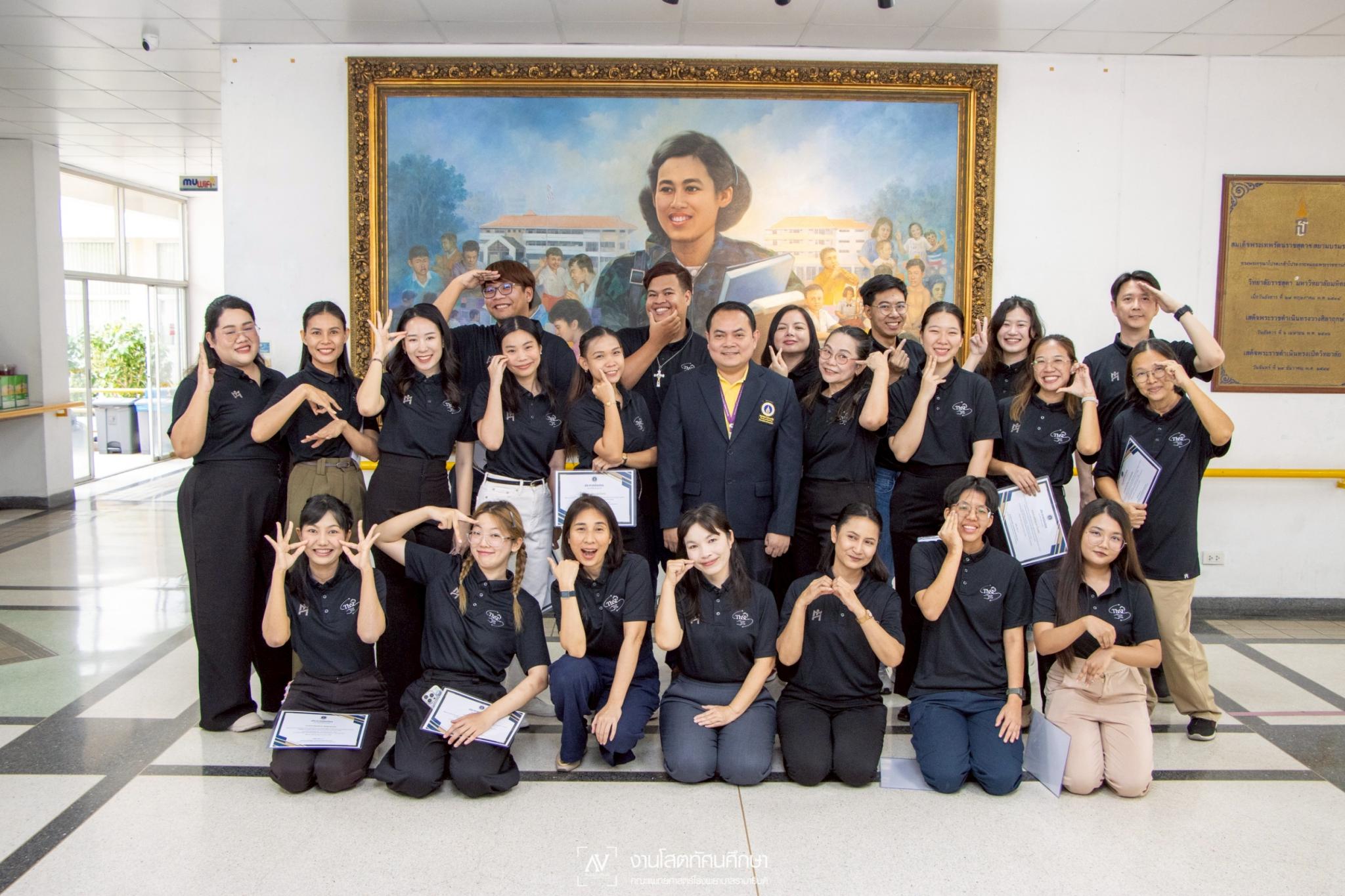วันที่ 25 กรกฎาคม 2568 ผู้ช่วยศาสตราจารย์ ดร.ธีรศักดิ์ ศรีสุรกุล ผู้ช่วยคณบดีฝ่ายกิจการนักศึกษา คณะแพทยศาสตร์โรงพยาบาลรามาธิบดี มหาวิทยาลัยมหิดล ให้เกียรติเป็นประธานปิดโครงการอบรมการติดตามและพัฒนาต่อยอดทักษะผู้ผ่านการอบรมล่ามภาษามือชุมชน โดย ระดับที่ 1 จัดอบรมในระหว่างวันที่ 26 พฤษภาคม 2568- วันที่ 20 มิถุนายน 2568 และระดับที่ 2 ในระหว่างวันที่ 30 มิถุนายน 2568 - วันที่ 25 กรกฎาคม 2568 พร้อมมอบประกาศนียบัตรให้แก่ผู้ผ่านการอบรมในระดับที่ 1 จำนวน 17 คน ณ อาคารอำนวยการ สถาบันราชสุดา คณะแพทยศาสตร์โรงพยาบาลรามาธิบดี มหาวิทยาลัยมหิดล
