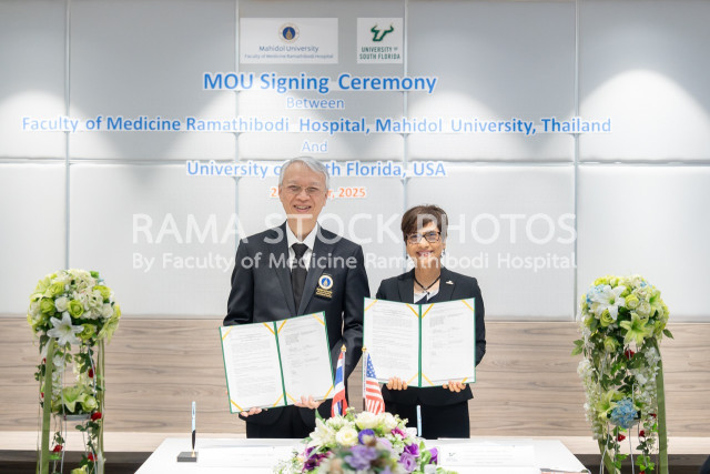 พิธีลงนามบันทึกข้อตกลงความร่วมมือ (MOU) ระหว่าง คณะแพทยศาสตร์โรงพยาบาลรามาธิบดี มหาวิทยาลัยมหิดล และมหาวิทยาลัยเซาท์ฟลอริดา สหรัฐอเมริกา