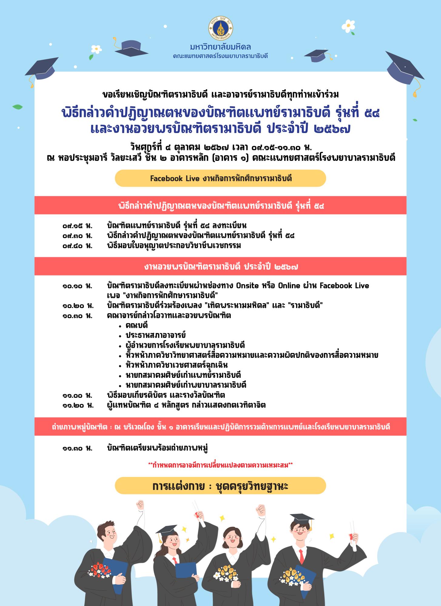 พิธีกล่าวคำปฏิญาณตนของบัณฑิตแพทย์รามาธิบดี รุ่นที่ 54 และ งานอวยพรบัณฑิตรามาธิบดี ประจำปี 2567