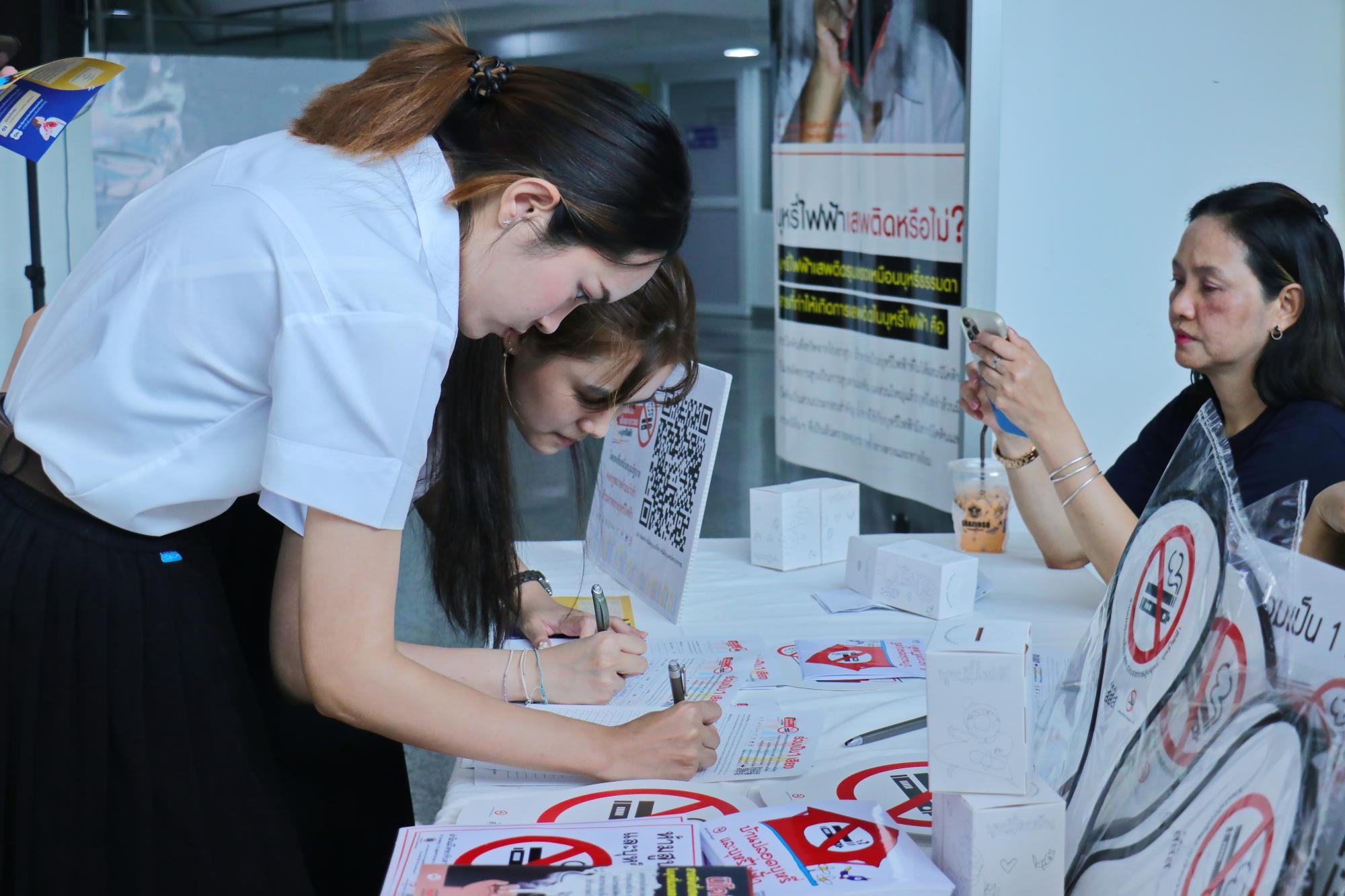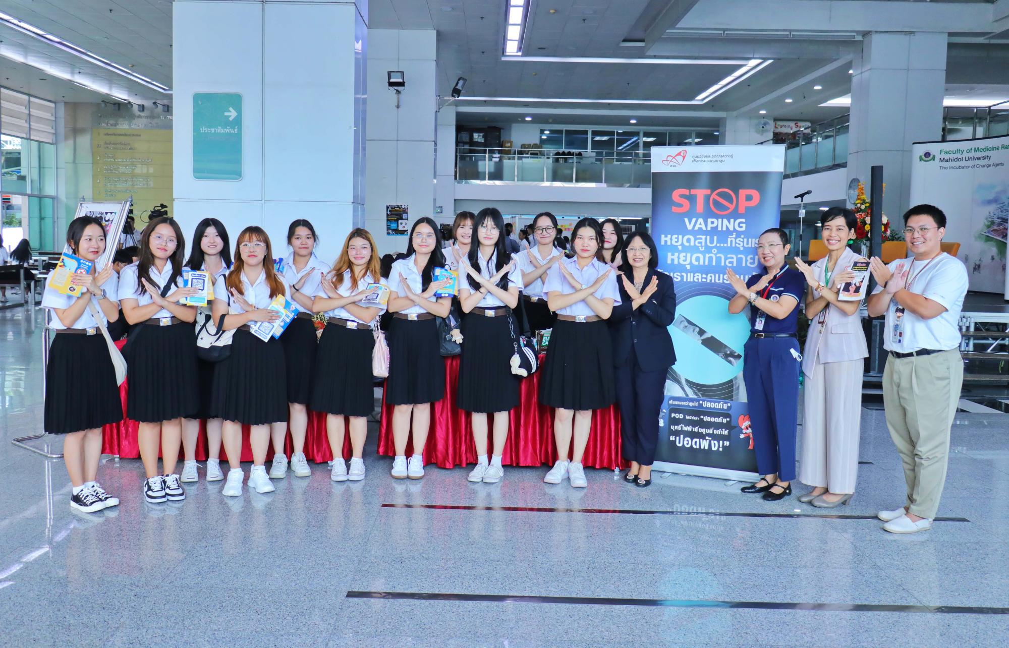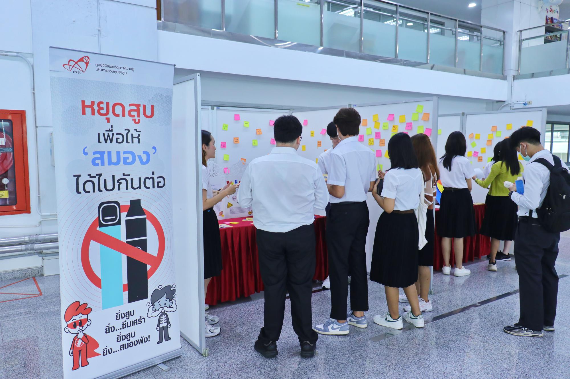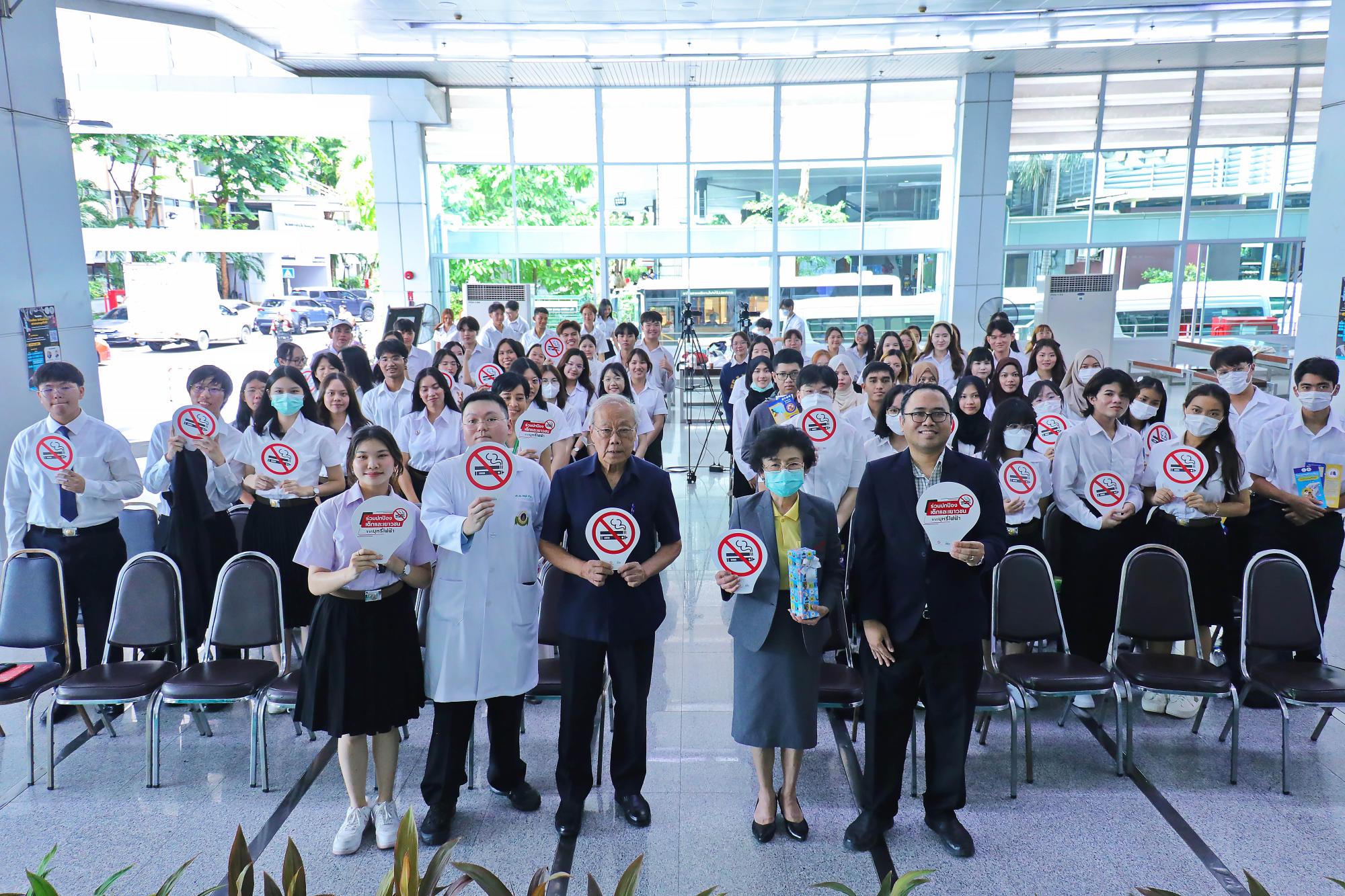 สภานักศึกษาแพทย์รามาธิบดี ร่วมกับงานกิจการนักศึกษา สำนักงานการศึกษา โครงการล้านเสียง...เพื่อปกป้องเด็กและเยาวชนจากบุหรี่ไฟฟ้า โดยได้รับเกียรติจาก ศ.เกียรติคุณ นพ.ประกิต วาทีสาธกกิจ ประธานมูลนิธิรณรงค์เพื่อการไม่สูบบุหรี่ ศ.พญ.สุวรรณา เรืองกาญจนเศรษฐ์ และ รศ.นพ.สหภูมิ ศรีสุมะ ร่วมแลกเปลี่ยนในกิจกรรม session talk ภายใต้หัวข้อ โทษของบุหรี่ไฟฟ้า และการบังคับใช้กฎหมายในไทย เมื่อวันที่ 24 กรกฎาคม พ.ศ. 2567 ณ โถงชั้น 1 อาคารเรียนและปฏิบัติการรวมด้านการแพทย์และโรงเรียนพยาบาลรามาธิบดี คณะแพทยศาสตร์โรงพยาบาลรามาธิบดี มหาวิทยาลัยมหิดล และ โถงชั้น 1 ศูนย์การแพทย์สมเด็จพระเทพรัตน์