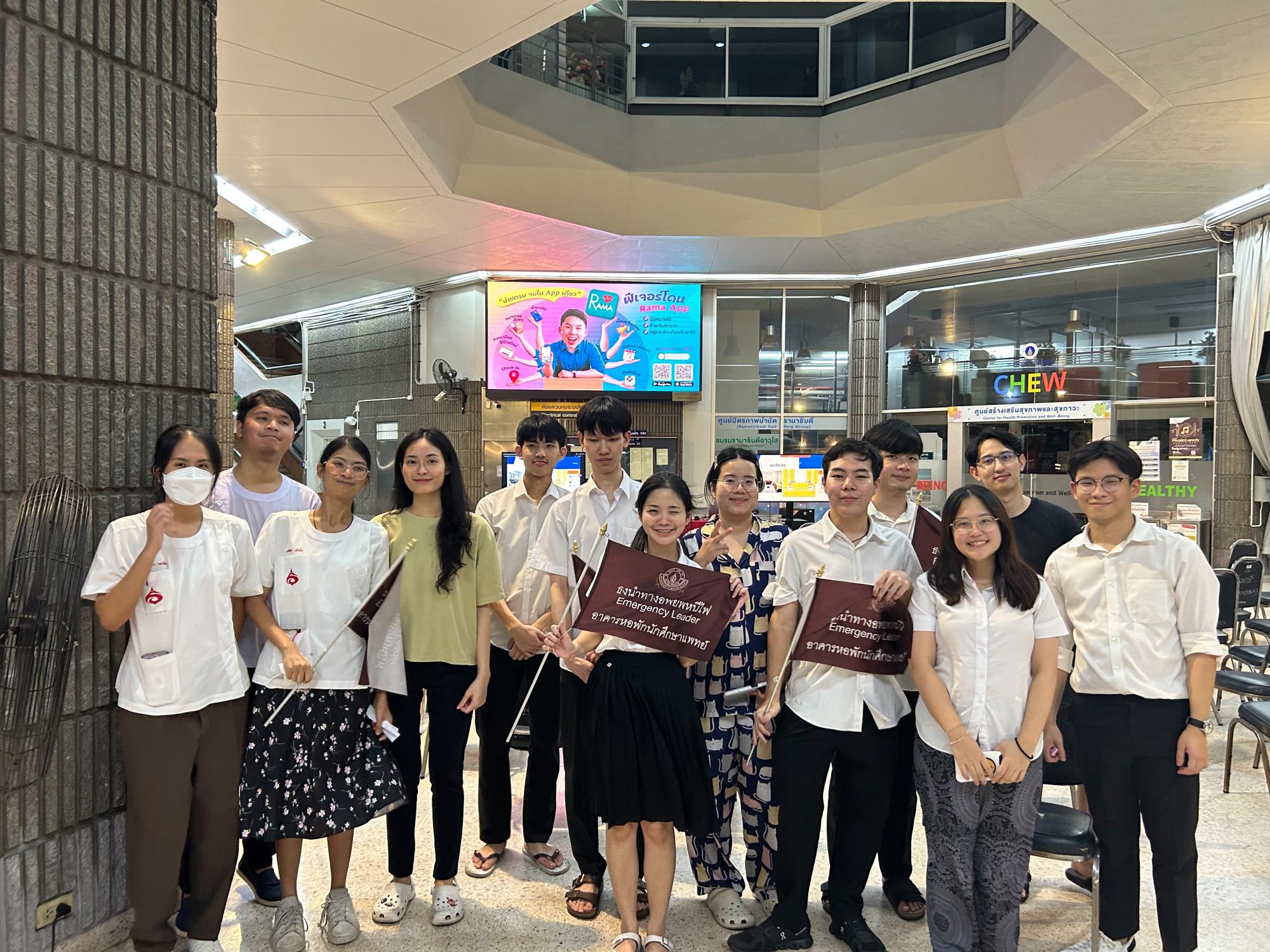 งานกิจการนักศึกษา สำนักงานการศึกษา ร่วมกับงานอาชีวอนามัย ความปลอดภัยและสิ่งแวดล้อม และฝ่ายวิศวกรรมบริการ จัดการซ้อมอพยพหนีไฟ ประจำปีการศึกษา 2567 เพื่อเตรียมความพร้อมเมื่อเกิดเหตุการณ์ฉุกเฉินจากอัคคีภัย ทั้งนี้ สามารถศึกษาข้อมูลเพิ่มเติมเกี่ยวกับการป้องกันตนเองเมื่อเกิดเหตุอัคคีภัย ได้ที่ https://intra9.rama.mahidol.ac.th/occrama/knowledge/general/fire เมื่อวันที่ 20 พฤศจิกายน 2567 ณ หอพักนักศึกษาแพทย์ คณะแพทยศาสตร์โรงพยาบาลรามาธิบดี มหาวิทยาลัยมหิดล