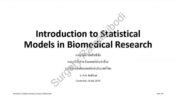 Introduction to Statistical Models : อ.นพ.ภาณุวัฒน์ เลิศสิทธิชัย