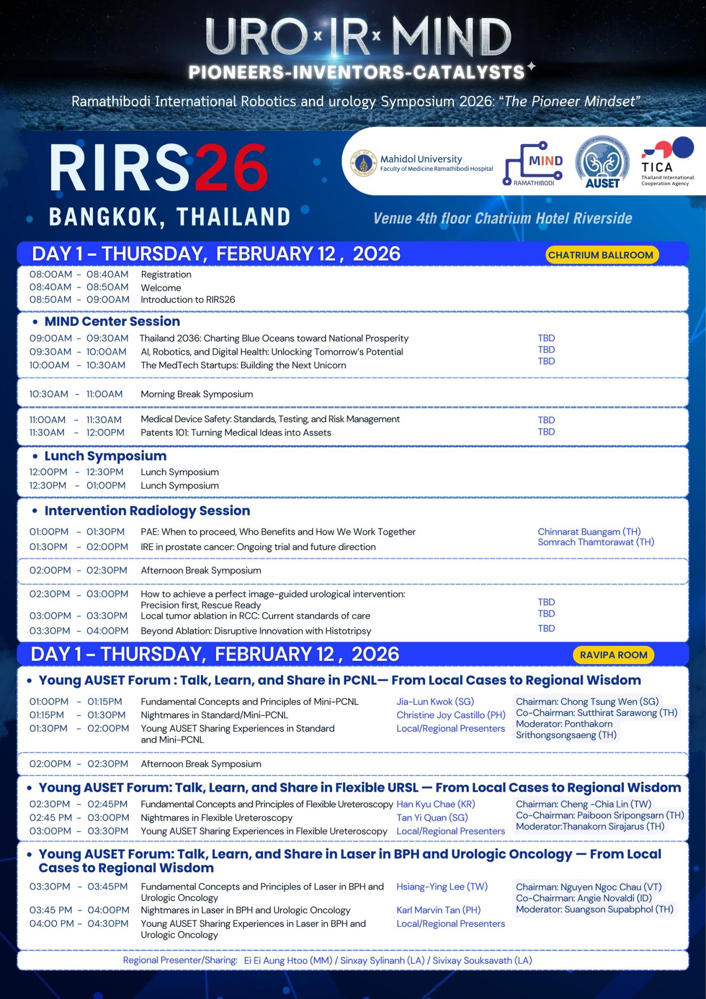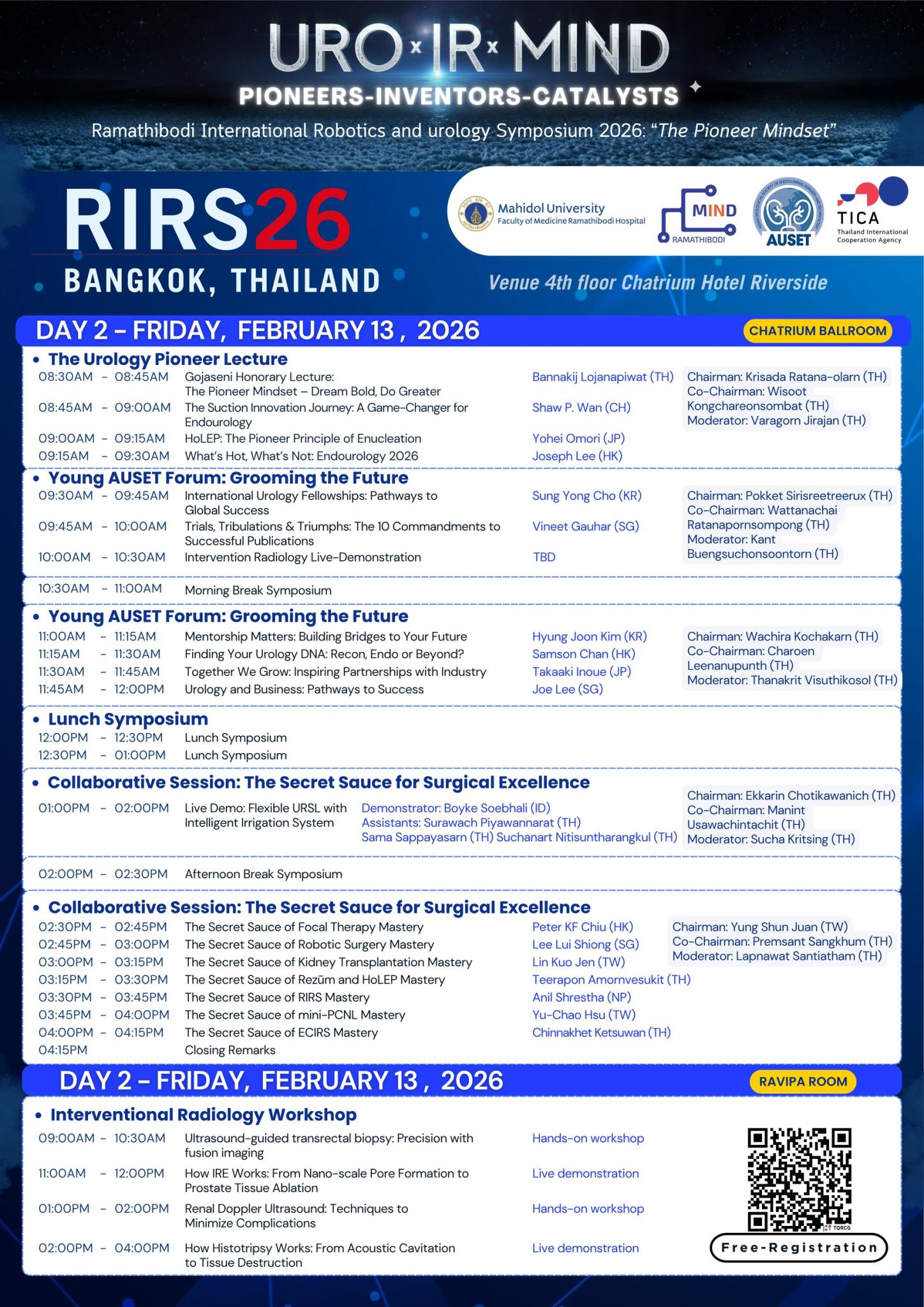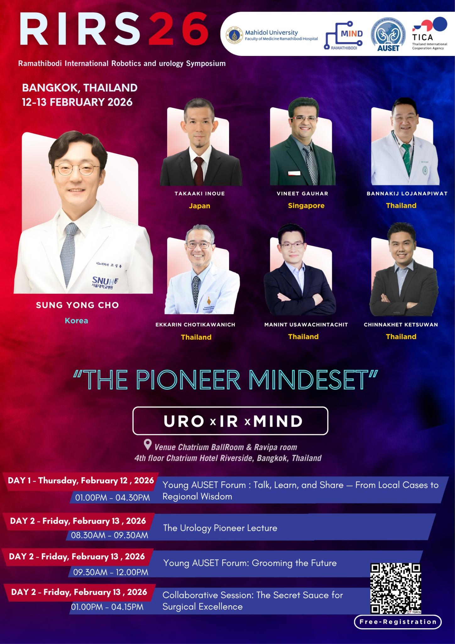 📣 สาขาวิชาศัลยศาสตร์ปัสสาวะ ภาควิชาศัลยศาสตร์ คณะแพทยศาสตร์ โรงพยาบาลรามาธิบดี มหาวิทยาลัยมหิดล ขอเรียนเชิญร่วมงานประชุมวิชาการ "Ramathibodi International Robotics and Urology Symposium 2026 (RIRS26)"📣