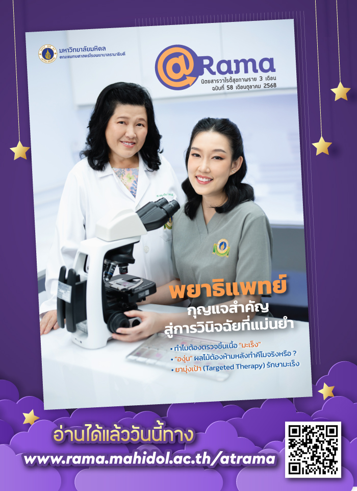 ยังมีเรื่องราวอีกมากมายให้ติดตามในเล่ม ทั้งที่อ่านสนุก ได้ความรู้ แล้วอย่าลืมแชร์ความรู้ดีดีจากเรากันนะ สามารถติดตาม content ดีดีทางสุขภาพของเราได้ทางเว็บไซต์ https://www.rama.mahidol.ac.th/atrama/ หวังว่าทุกท่านคงเพลิดเพลินกับนิตยสารของเรา เพราะสุขภาพดีเริ่มต้นได้ ด้วยปลายนิ้วคลิก