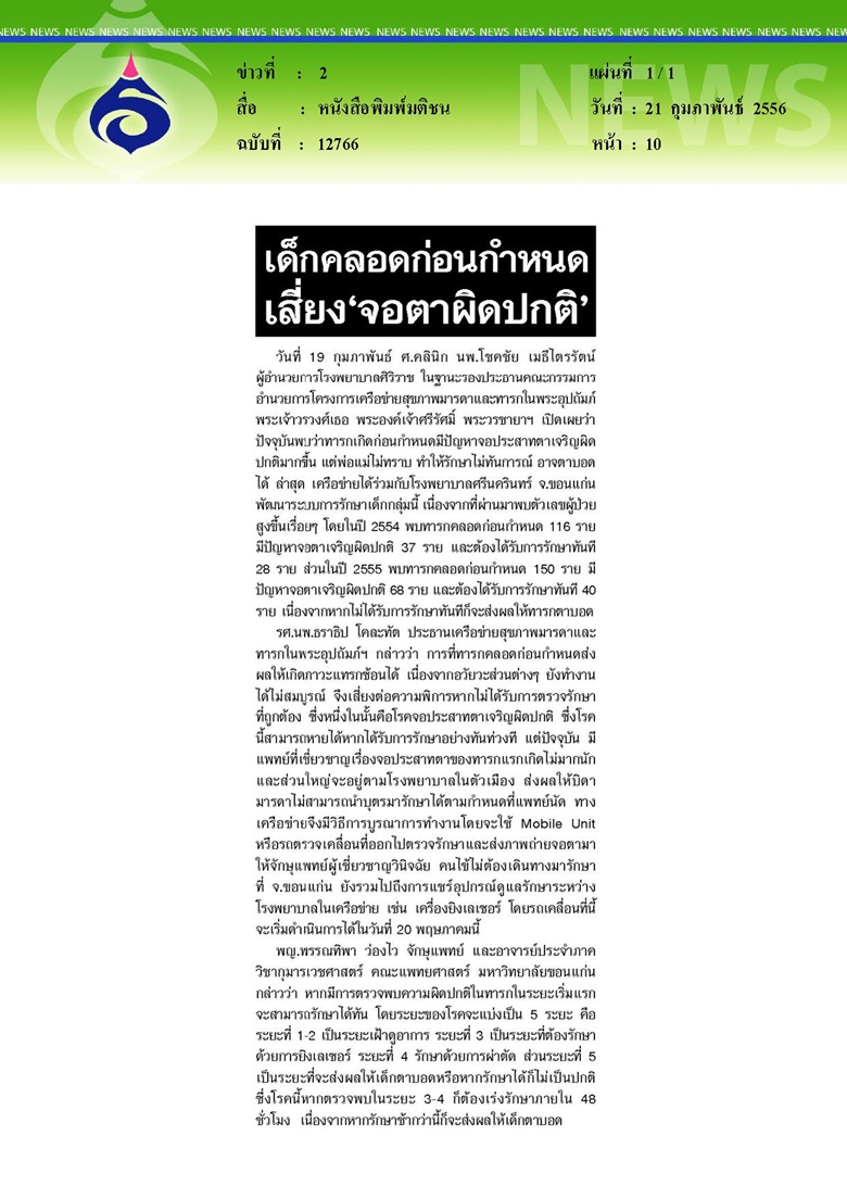 เด็กคลอดก่อนกำหนดเสี่ยงจอตาผิดปกติ