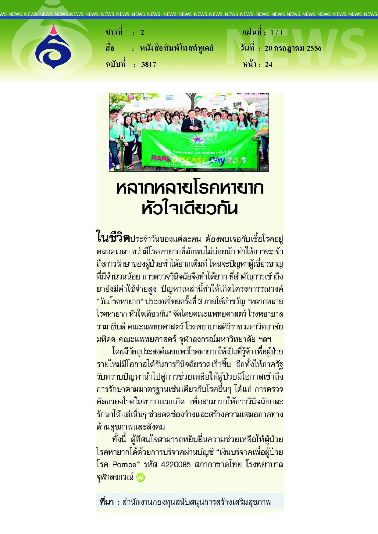 โพสต์ทูเดย์ หลากหลายโรคหายากหัวใจเดียวกัน