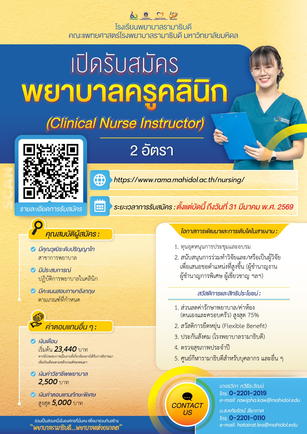 เปิดรับสมัครพยาบาลครูคลินิก (Clinical Nurse Instructor) 2 อัตรา