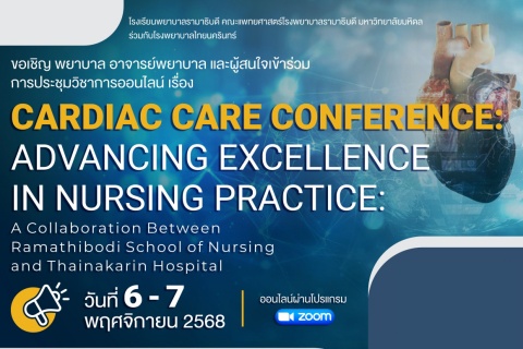 ขอเชิญเข้าร่วมการประชุมวิชาการออนไลน์ เรื่อง CARDIAC CARE CONFERENCE: ADVANCING EXCELLENCE IN NURSING PRACTICE: A Collaboration Between Ramathibodi School of Nursing and Thainakarin Hospital