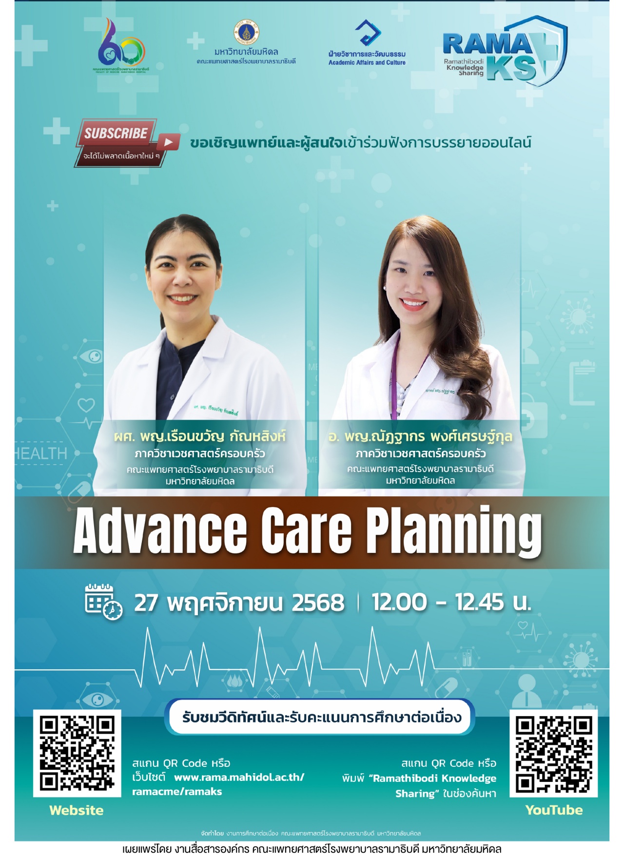 ขอเชิญแพทย์และผู้สนใจเข้าร่วมฟังการบรรยายออนไลน์ Advance Care Planning