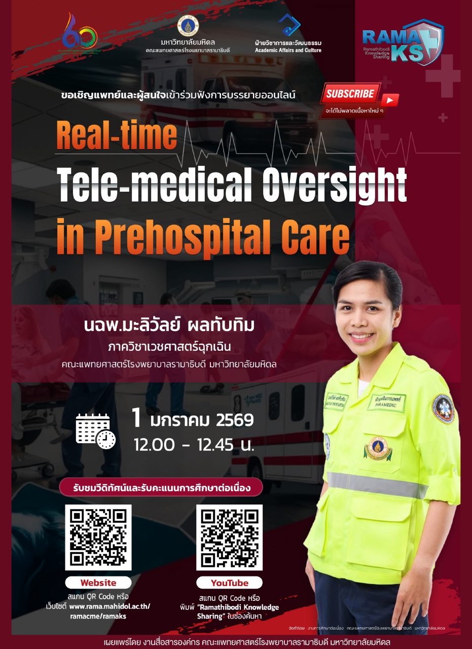 ขอเชิญแพทย์และผู้สนใจเข้าร่วมฟังการบรรยายออนไลน์ Real-time Tele-medical oversight in Prehospital Care