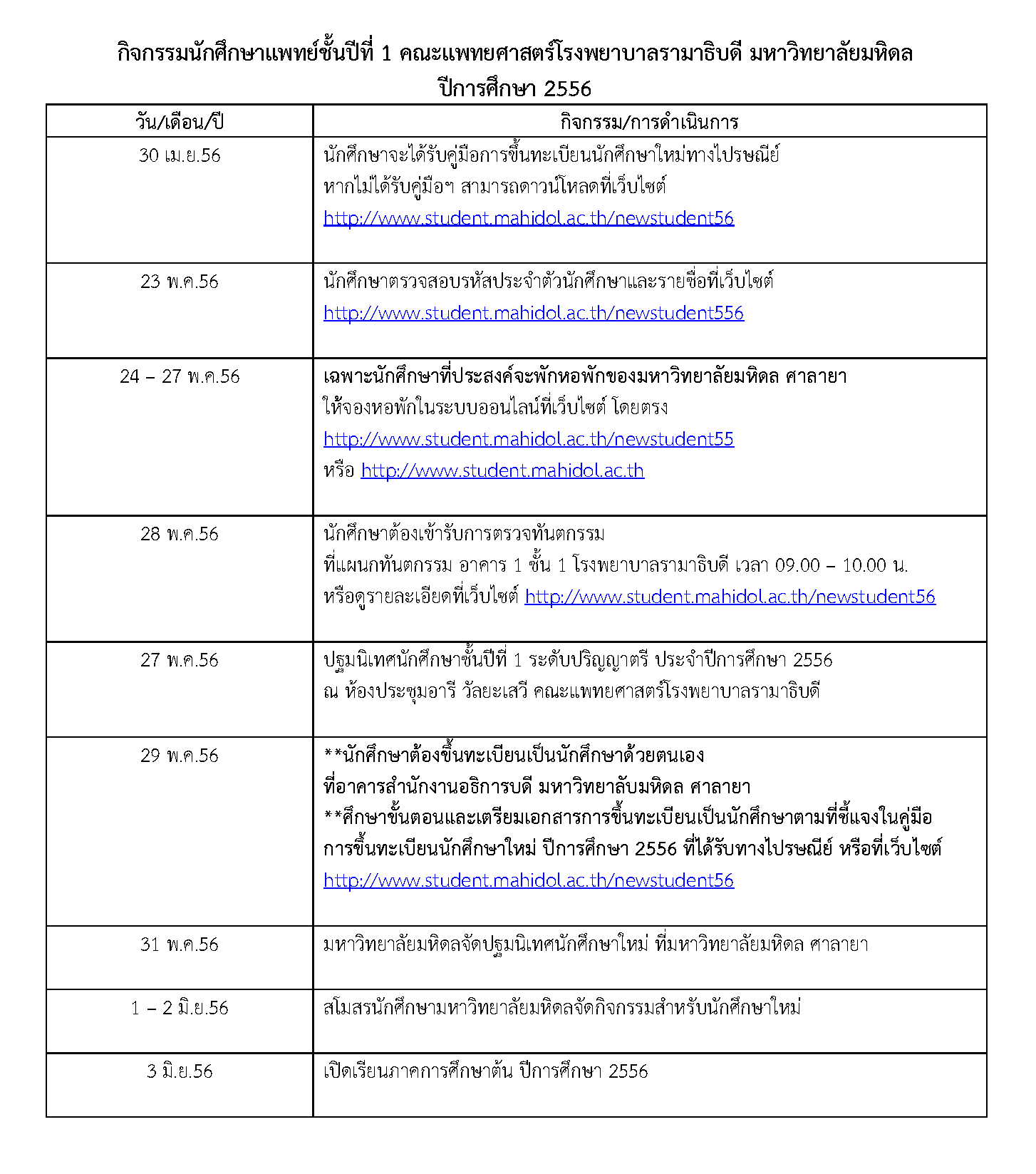 กิจกรรมนักศึกษาแพทย์ชั้นปีที่ 1