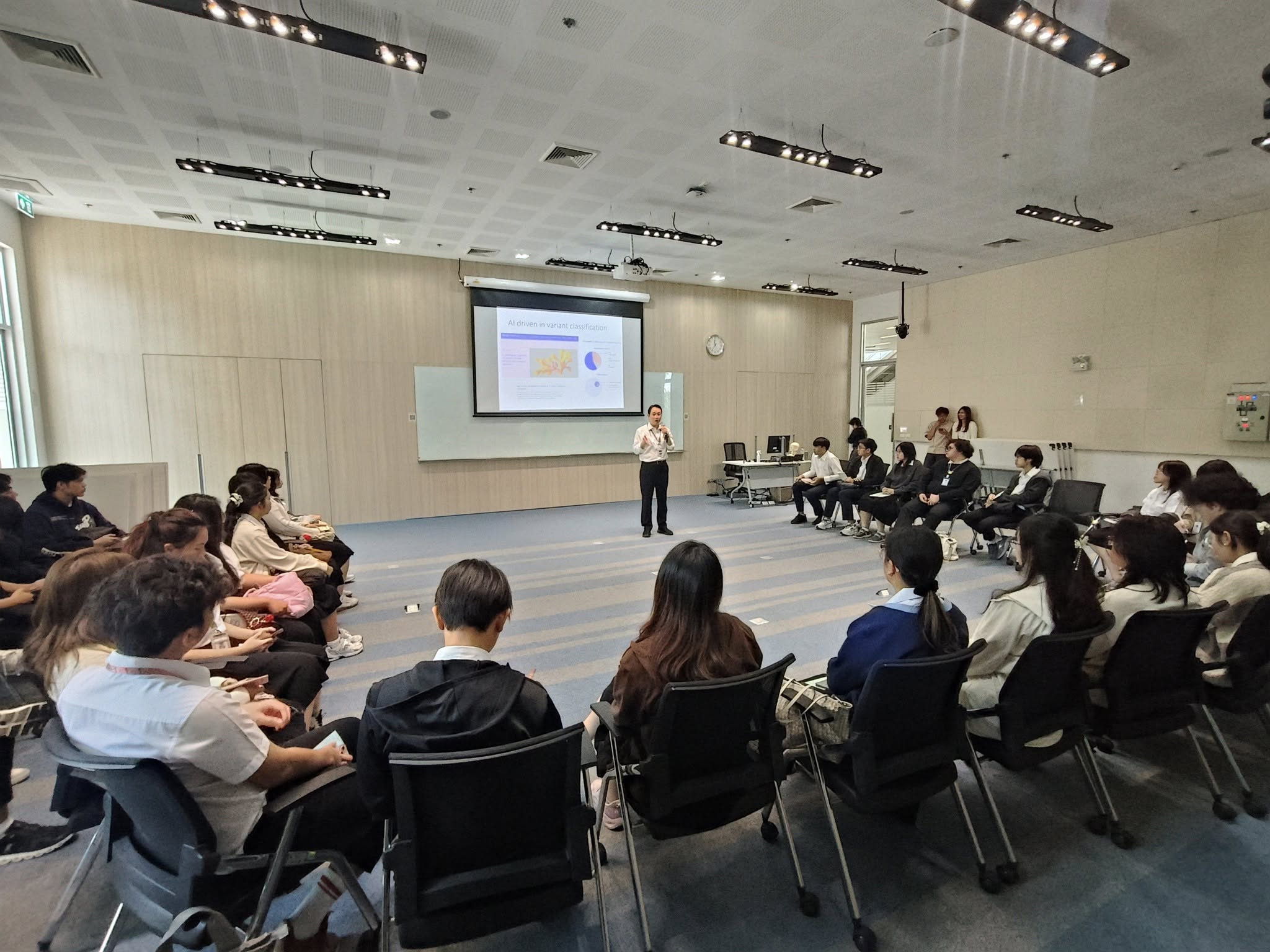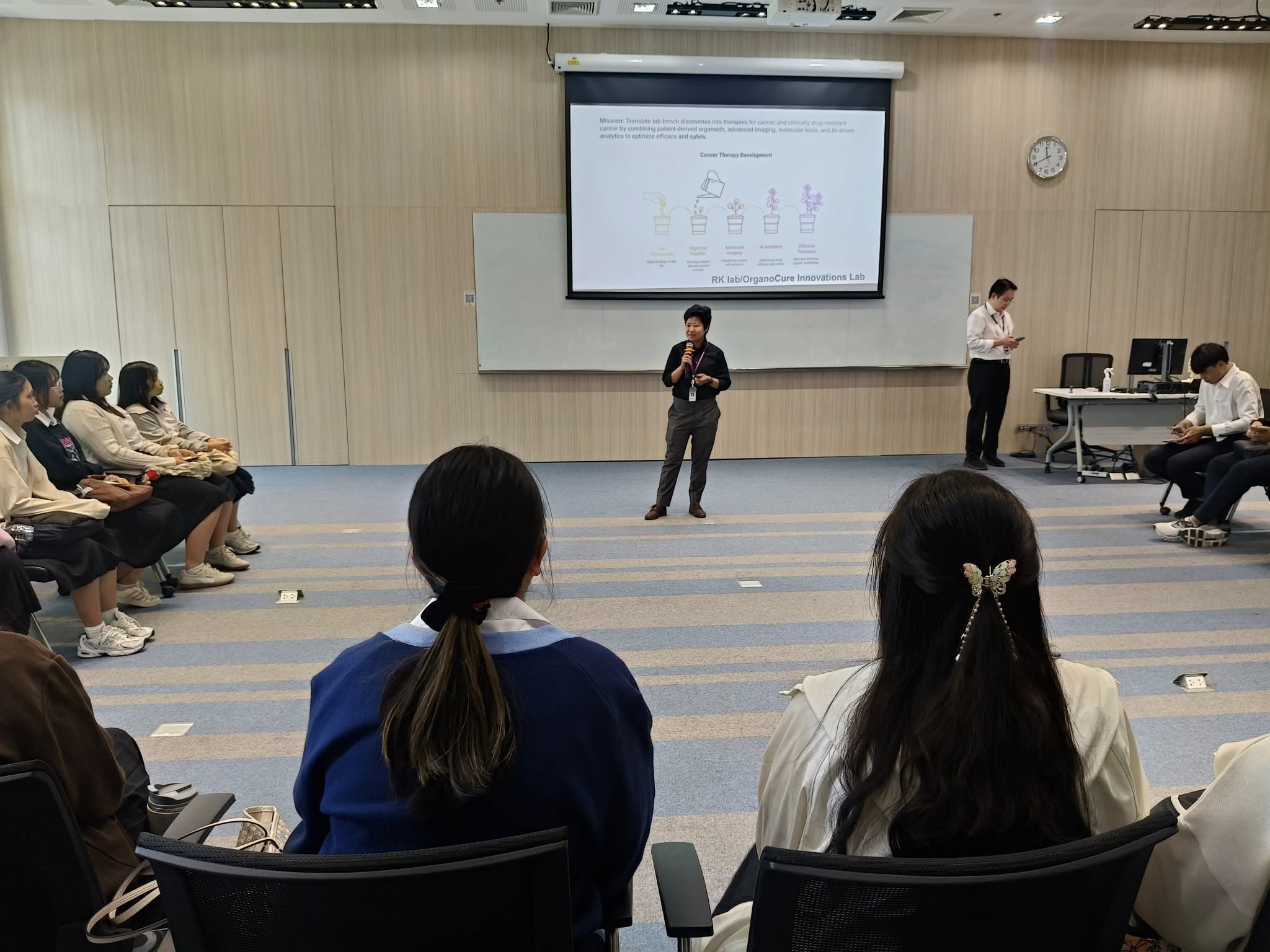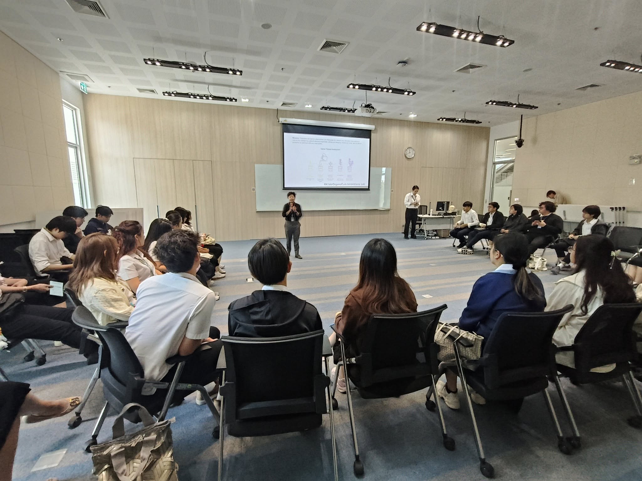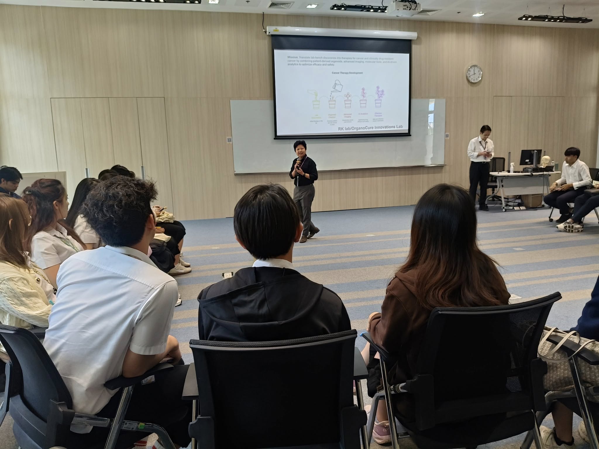 👩🔬Assoc.Prof.Dr. Rossukon Kaewkhaw and 👨🔬 Assoc.Prof.Dr. Donniphat Dejsuphong, representatives of the Program in Translational Medicine 🧬, introduced their research area to 🩺 second-year medical students of the Faculty of Medicine Ramathibodi Hospital at the 🌟Research Market 2025 event 🔬 on November 28, 2025, at Chakri Naruebodindra Institute. 🏥